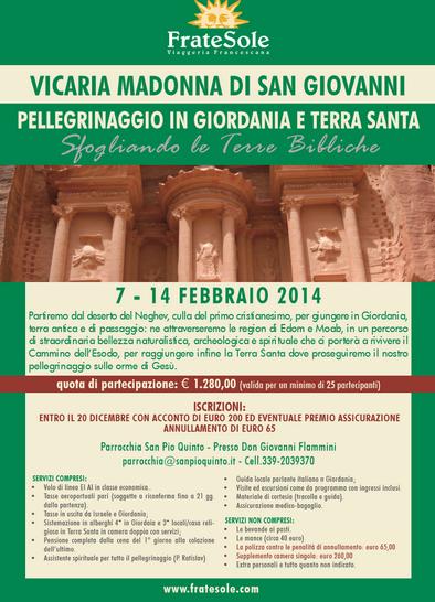 DIOCESI – La Vicaria Madonna di San Giovanni, informa che sta organizzando un pellegrinaggio in Terra Santa.