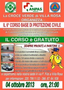 MARTINSICURO – La Croce Verde di Villa Rosa organizza presso la propria sede di Villa Rosa in via F. Filzi il corso base per volontario di Protezione Civile, giunto quest’anno alla sua sesta edizione. Il corso, della durata di sei lezioni, avrà inizio venerdì 4 ottobre alle ore 21, è gratuito e rivolto a tutti. Durante gli incontri si affronteranno differenti tematiche e argomenti, ponendo l’accento sulle problematiche inerenti il l territorio. Il corso avrà cadenza settimanale e si concluderà con un esame finale, consistente in una prova pratica. Per info 320.7991153 – 366.6764938.