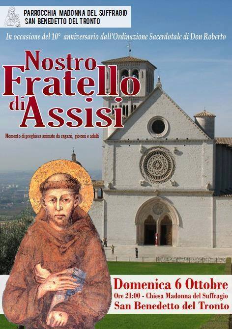 SAN BENEDETTO DEL TRONTO – Domenica 6 ottobre alle ore 21.00 si terra presso la Chiesa Madonna del Suffragio un momento di preghiera animato da ragazzi, giovani e adulti in occasione anche dei 10 anni di sacerdozio del Parroco Don Roberto Melone.