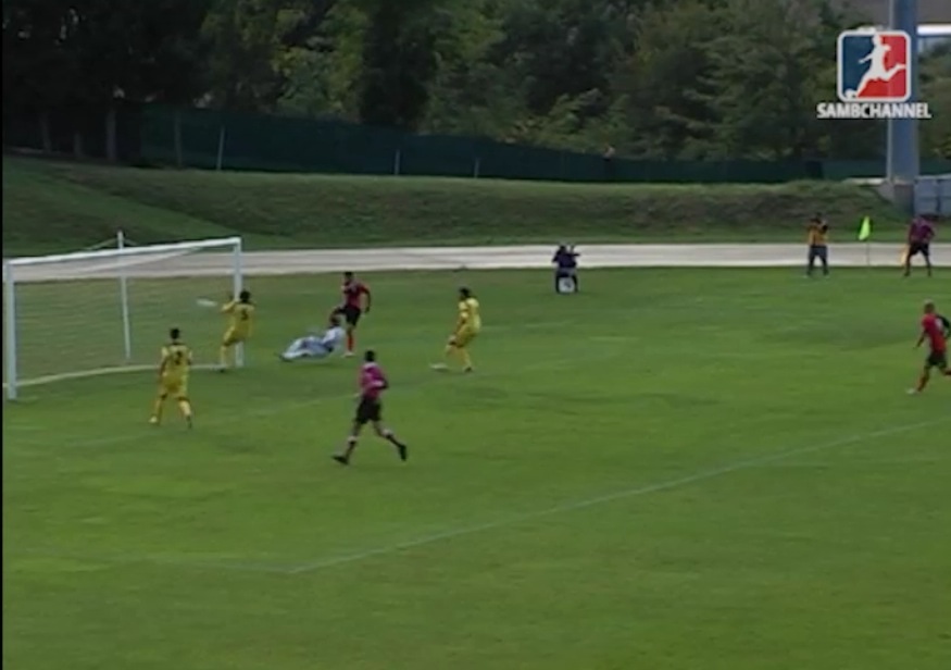 CRONACA. Parte a spron battuto la Samb. Da subito Tozzi Borsoi e compagni appaiono in giornata. Al 12′ i rossoblù passano in vantaggio, Traini pennella un lancio perfetto per Padovani che prima salta Cinquegrana in uscita disperata e poi insacca. Samb in vantaggio 0 – 1. La Folgore prova a reagire ma l’unica azione degna di nota è fermata dal direttore di gara per un off side. Al 24′ ancora Samb in avanti, Padovani da posizione centrale cerca la conclusione dalla distanza, pallone abbondantemente sopra la traversa. Sette minuti dopo i rossoblù sfiorano il raddoppio. Padovani da poco fuori area prende la mira e di esterno destro manda il pallone a stamparsi sul palo, sulla ribattuta Galli in scivolata manda il pallone sul fondo. Il primo tempo è un assedio della Samb a Cinquegrana. Al 35′ nuova azione per gli ospiti. Tartabini si inserisce in area dalla destra, cerca la conclusione ribattuta, il pallone giunge a Padovani che dal discetto del rigore spara addosso a Cinquegrana, ancora Tartabini sulla ribattuta ma il pallone termina sul fondo. Prima del fischio di Nube di Mestre c’è ancora tempo per un’inzuccata di Padovani sul fondo.