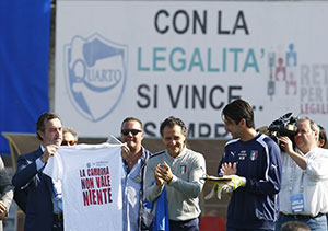 Dare un calcio alla camorra. A Quarto, in provincia di Napoli, si può e non solo simbolicamente. Grazie ad una squadra di calcio. La Nuova Quarto Calcio per la legalità è nata un anno e mezzo fa, ma grazie alla visita della Nazionale di calcio, lunedì 14 ottobre, allo stadio Giarrusso, ora tutti i riflettori sono puntati su questa squadra che rappresenta la voglia di riscatto e di legalità di quella parte sana della cittadinanza che è stata sempre costretta a convivere con chi grazie alla malavita fa affari. A Luigi Cuomo, coordinatore nazionale di Sos Impresa e dirigente unico della Nuova Quarto Calcio, abbiamo chiesto di raccontarci questa storia.