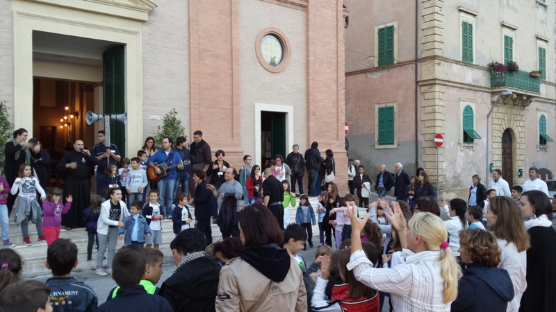 Giovedì alle ore 18.00 c’è stata l’accoglienza festosa di un nutrito gruppo di giovani e anziani, guidati dal parroco don Luigino Scarponi, che ha aspettato i padri passionisti fuori della chiesa di San Basso, all’inizio di via Roma, e li ha accompagnati in chiesa in festoso corteo cantando e pregando: dando lode al Signore per questo evento di grazia.