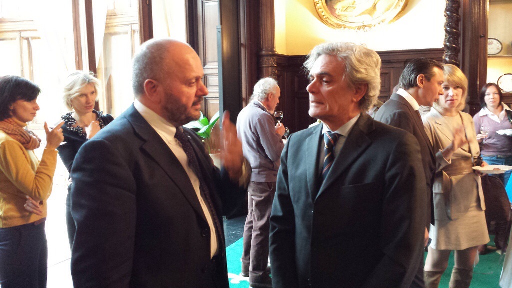 Il sindaco Giovanni Gaspari ha avuto occasione di conoscere il nuovo ambasciatore d’Italia a Mosca Cesare Maria Ragaglini nonché di incontrare e salutare il primo consigliere dell’Ambasciata italiana, la sambenedettese Samuela Isopi, premio Gran Pavese Rossoblù 2013.