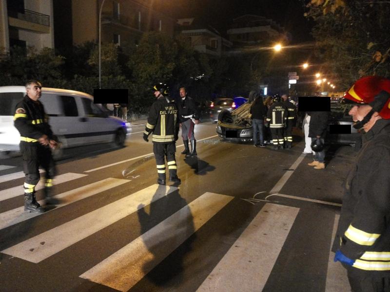 GROTTAMMARE – Grottammare, ore 18.30 circa, una fiat punto, guidata da un cittadino straniero, proveniente da San Benedetto del Tronto e diretta verso Cupra Marittima, si è capovolta all’altezza delle scuole elementari Speranza lungo la statale SS. 16 di Grottammare.