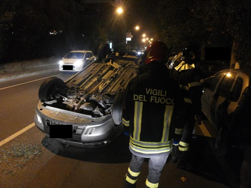 Da una prima ricostruzione sembrerebbe che la fiat punto impattando con le automobili parcheggiate lungo la nazionale abbia fatto leva sulla gomma di una di queste e si sia capovolta.