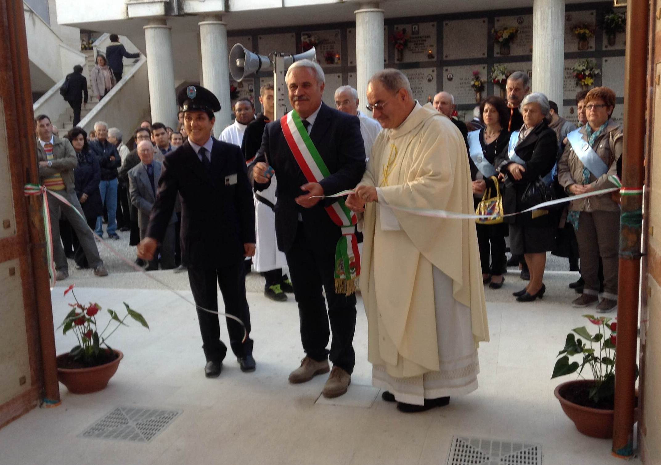 Al termine della celebrazione il sindaco Domenico D’Annibali, insieme allo stesso Don Luigino, ha tagliato il nastro dei nuovi loculi, quasi tutti già assegnati a quanti ne hanno fatto richiesta, e qualcuno già occupato. “Ringrazio l’assessore ai lavori pubblici Graziano Cognini e al tecnico comunale l’ingegner Pietro Montenovo – ha affermato il sindaco – per essersi impegnati ed aver portato a termine questo progetto ideato appunto dal Comune. Siamo andati incontro alle esigenze della cittadinanza che da tempo manifestava questa richiesta. Siamo riusciti inoltre a proporli agli interessati a prezzi contenuti e per una lunga durata, ovvero 99 anni”. La struttura, anche se diversa è comunque in armonia con quelle esistenti.