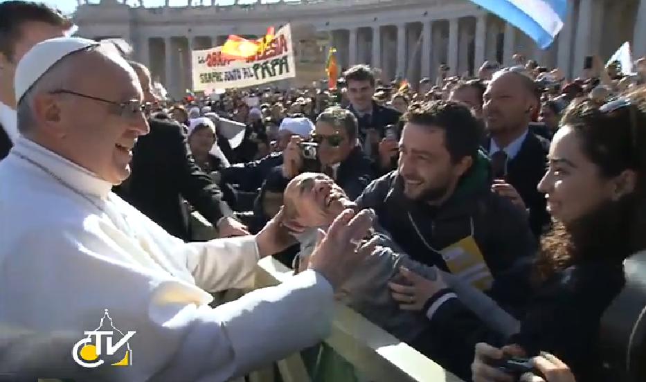 Tra gli unitalsiani c’era anche Cecé, il ragazzo che Papa Francesco ha baciato per primo dopo la sua elezione. Un’immagine che ha commosso il mondo intero. Cecé mentre passava tra le persone della ferie, con i suoi occhi spalancati e aperti al mondo, è passato tra gli sguardi indifferenti e distratti di chi è preso dal quotidiano. Mentre il Papa si è fermato per salutare Cecé, in molti non l’hanno nemmeno degnato di uno sguardo.