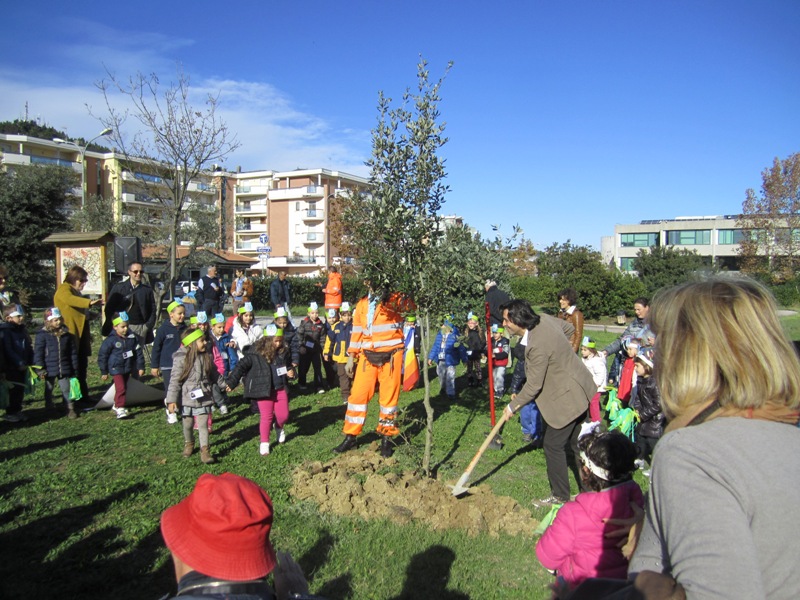 “La festa dell’albero è una festa molto antica – ha spiegato il sindaco Piergallini ai bambini – perché il rapporto tra l’uomo e gli alberi è sempre stato molto importante: è un’amicizia antica. Oggi festeggiamo gli alberi perché ci aiutano a vivere, facendoci respirare meglio. In più, questa volta, abbiamo anche un’altra cosa da ricordare e cioè le radici e tutte quelle persone che come un albero mettono radici in un posto per vivere meglio”. Così il primo cittadino ha voluto sottolineare l’invito di Legambiente – promotore dell’iniziativa in tutta Italia – a ricordare i diritti dei migranti, dedicando “la messa a dimora di nuovi alberi alle bambine e ai bambini nati in Italia da genitori stranieri, perché nascere figli di genitori stranieri in Italia non significa ancora essere cittadini italiani”. Con una promessa si è concluso il saluto del sindaco: “Cercare per il prossimo anno un’area verde in cui piantare un albero per ogni bambino che nascerà a Grottammare”.