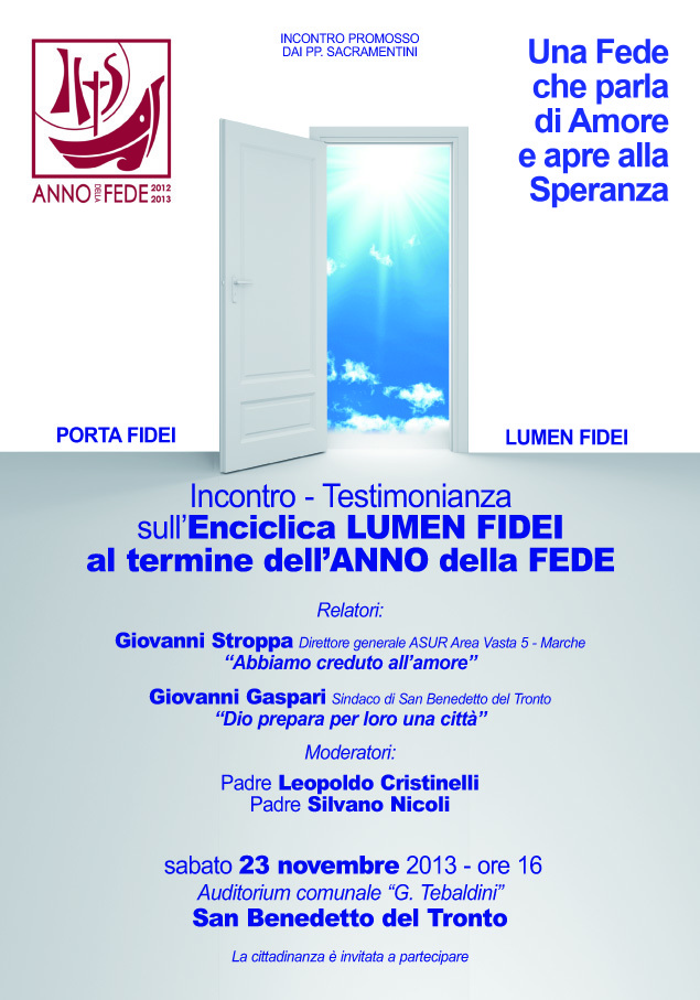 nostro Sindaco Giovanni Gaspari relazionerà sul tema “Dio prepara per loro una città”. L’incontro sarà moderato da Padre Leopoldo Cristinelli e da Padre Silvano Nicoli della comunità dei Padri Sacramentini.