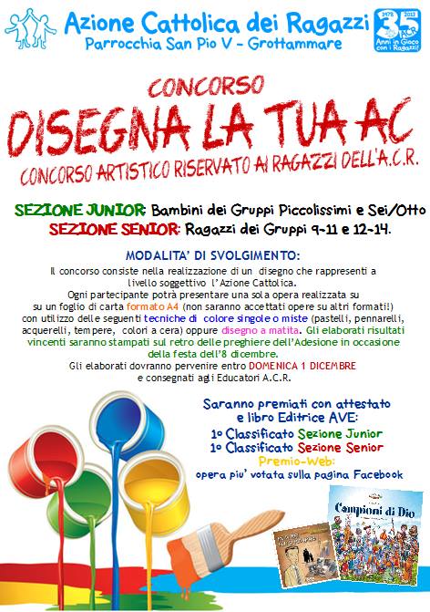 GROTTAMMARE – Seconda edizione per il fortunato concorso artistico riservato ai ragazzi ACR “Disegna la tua AC” indetto dall’Azione Cattolica della Parrocchia di San Pio V in occasione della festa dell’Adesione.