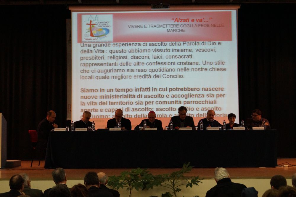 REGIONE MARCHE – “Noi vescovi siamo molto grati a questi laici che ci dicono le cose in faccia, con grande rispetto ma senza nascondere le loro attese”. A tributare un omaggio ai laici è stato monsignor Luigi Conti, arcivescovo di Fermo e presidente della Conferenza episcopale delle Marche, a conclusione del secondo Convegno ecclesiale marchigiano, svoltosi tra Ancona e Loreto sul tema: “Alzati e Va’! Vivere e trasmettere la fede oggi nelle Marche”. Tra i 720 partecipanti, in rappresentanza delle 13 diocesi delle Marche, i laici erano la componente più numerosa: tra di loro, molti i volti giovani, che hanno dato ai lavori un contributo concreto, sanamente provocatorio e creativo.