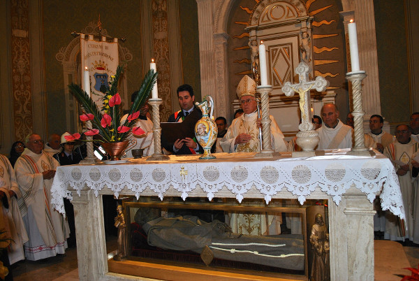 Al termine della celebrazione, il Sindaco Stracci ha donato l’anfora con dentro l’olio per la lampada del Santo “A nome di tutti i cittadini di Monteprandone offro questo olio fedele a San Giacomo delle Marca”.