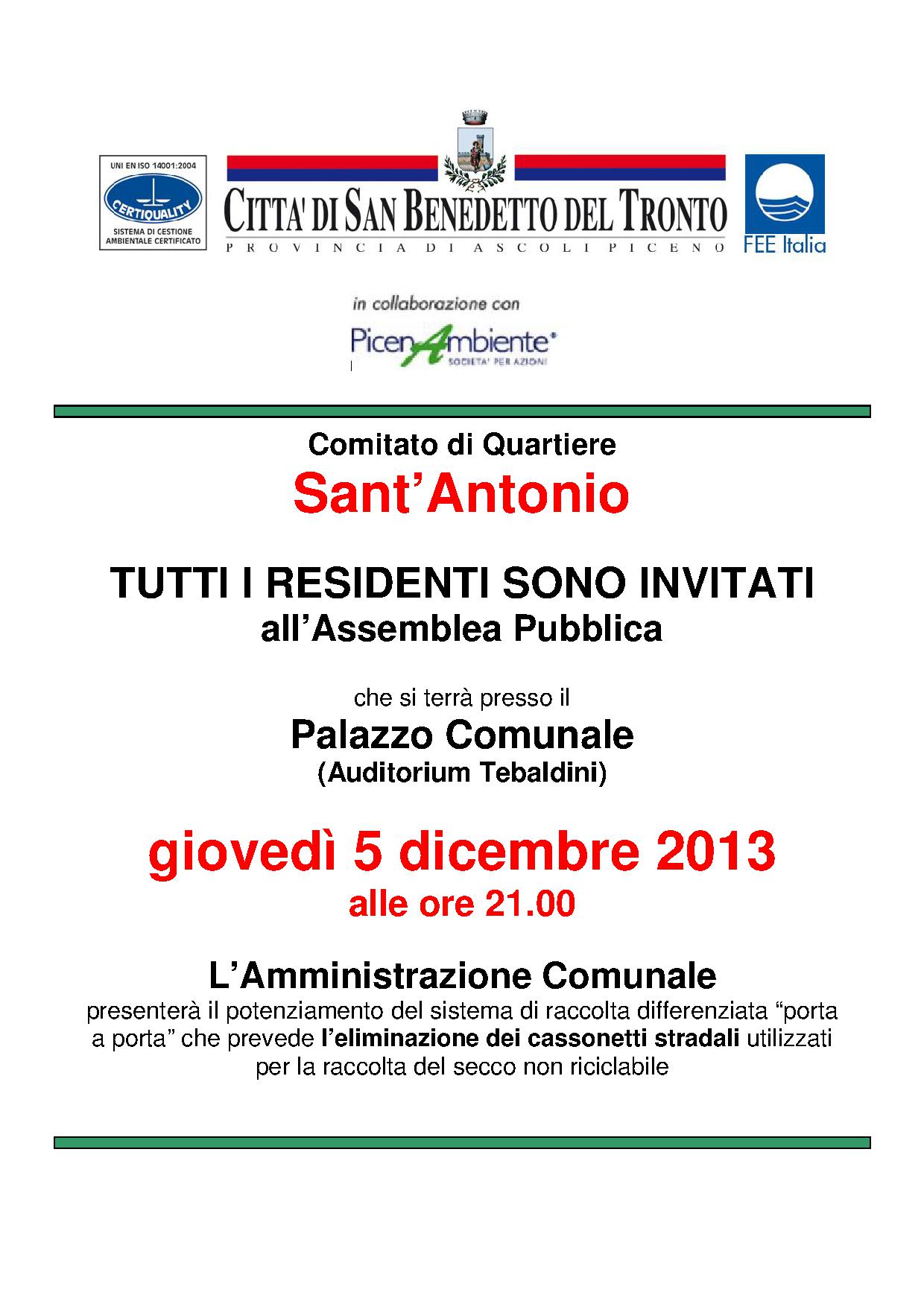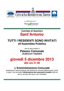 SAN BENEDETTO DEL TRONTO – Dopo la pausa estiva, riprenderà il programma di estensione a tutto il territorio comunale del servizio di ritiro “porta a porta spinto” dei rifiuti urbani. Nelle prossime settimane il sistema di ritiro a domicilio anche dei rifiuti non riciclabili inizierà ad interessare uno dei quartieri a più alta densità abitativa della città, il quartiere Sant’Antonio che comprende viale De Gasperi e tutte le vie limitrofe.