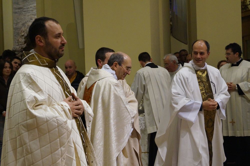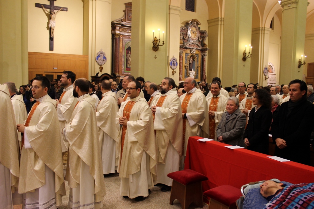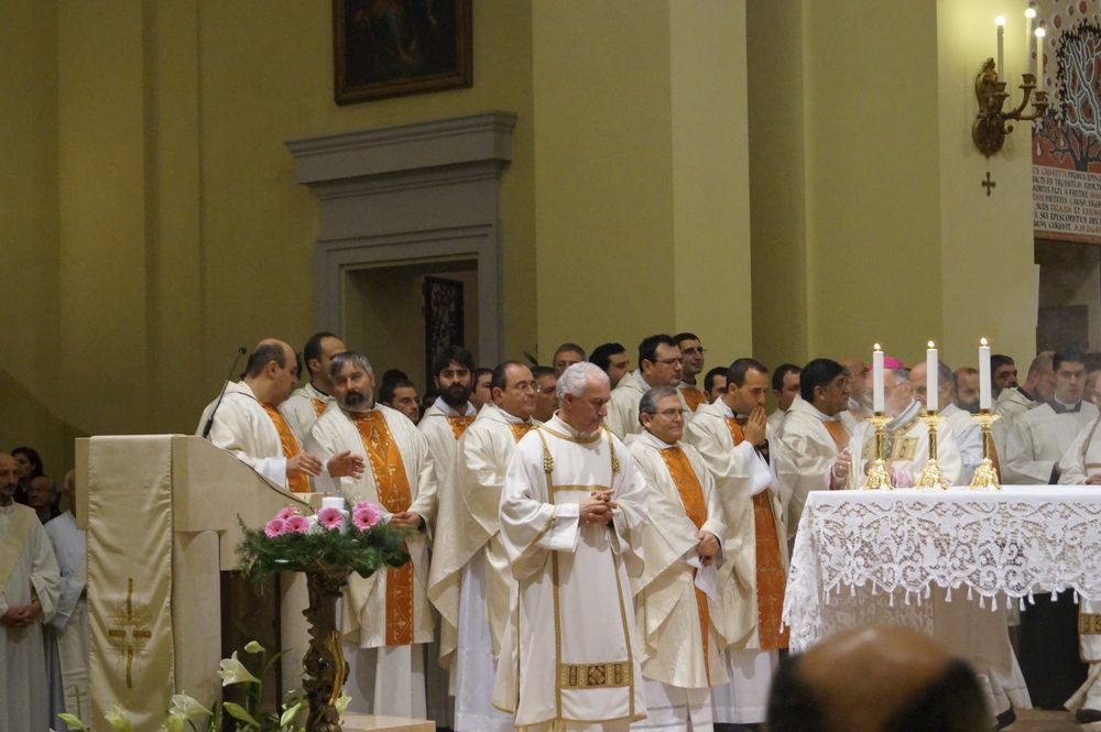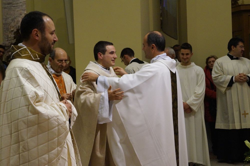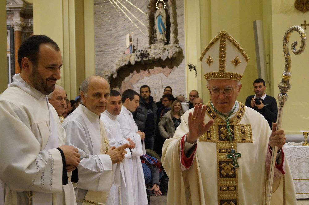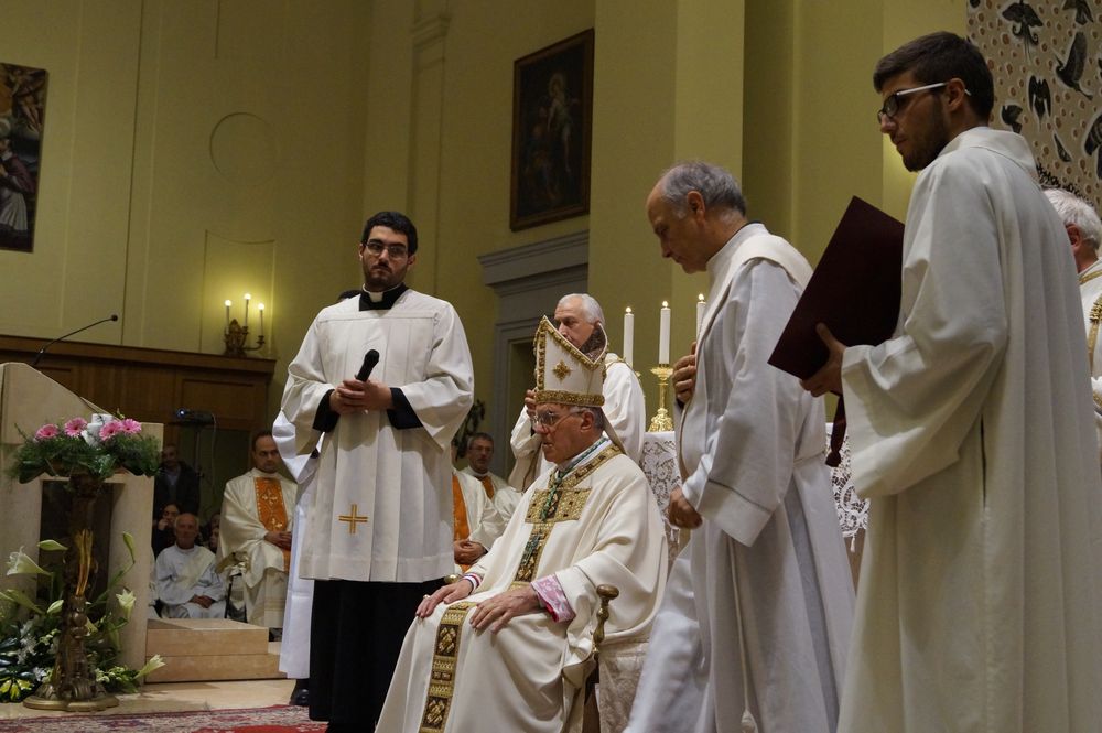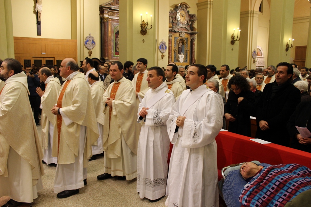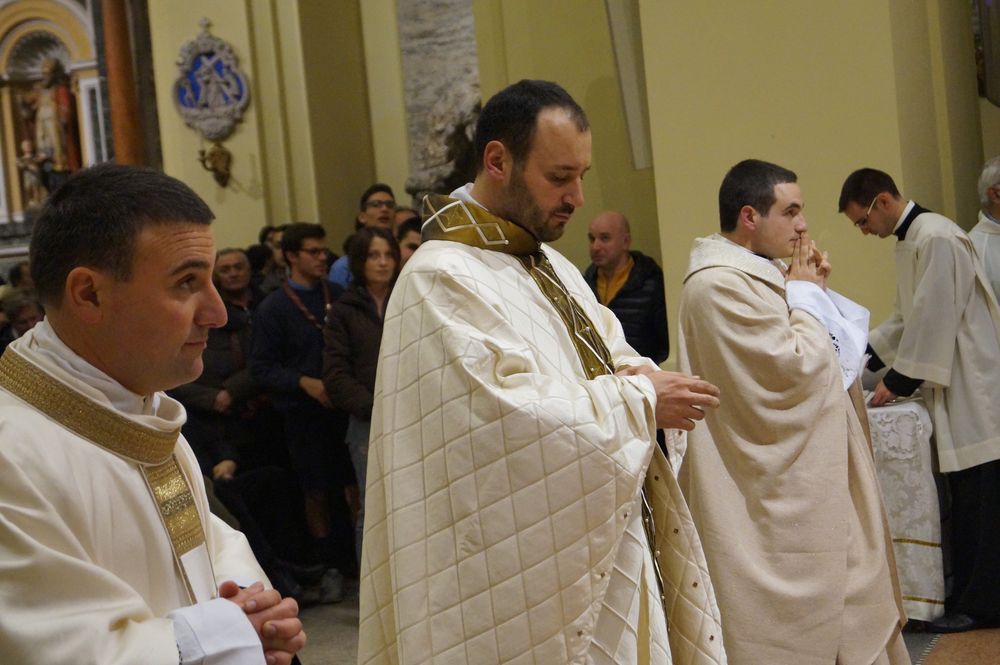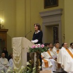 “Carissimi, ancora una volta la nostra Chiesa è in festa per l’ordinazione sacerdotale di alcuni suoi figli. Saluto tutti con vivo affetto e con intensa gioia e mi rallegro con i tre prossimi preti: Don Matteo Calvaresi, Don Giuseppe Giudici, Don Roberto Traini. Ringrazio le loro famiglie, le loro comunità parrocchiali ed i Seminari che li hanno preparati a questo grande momento.