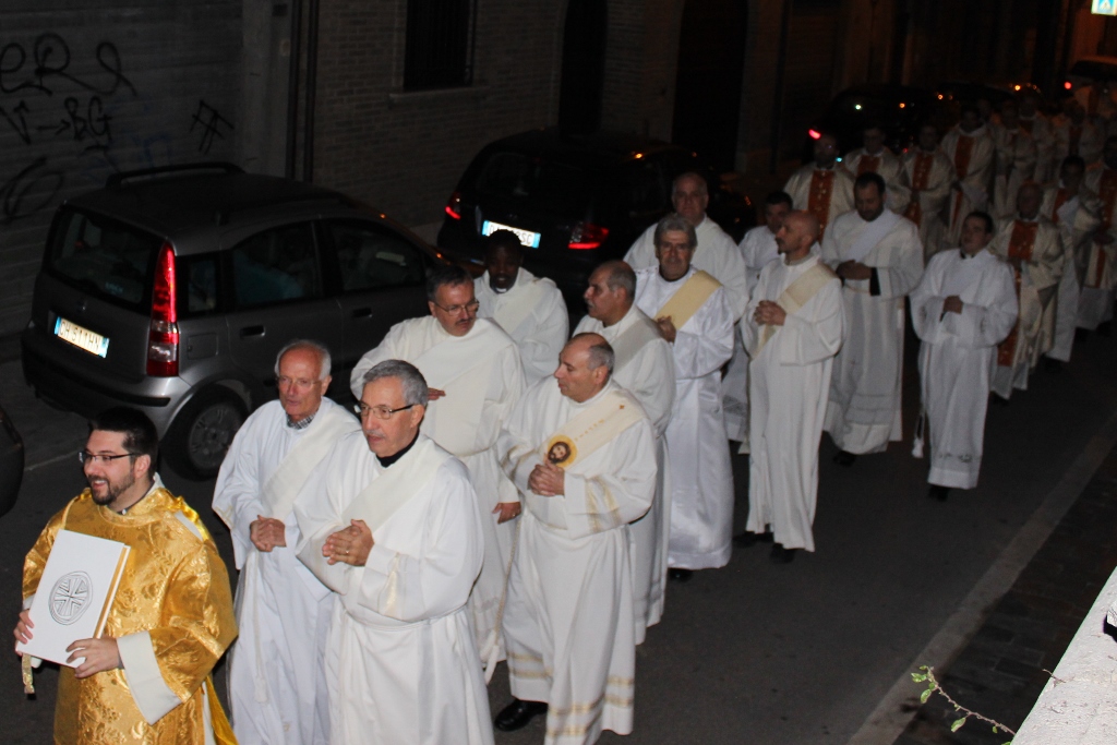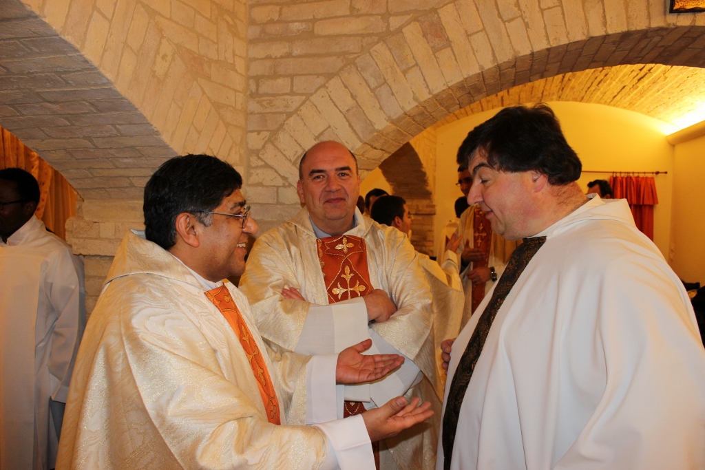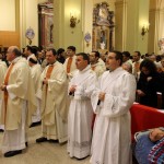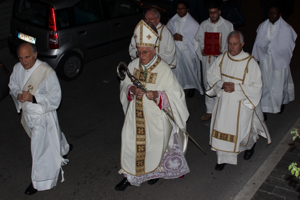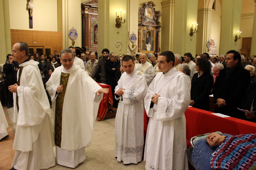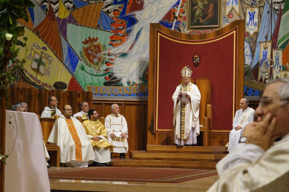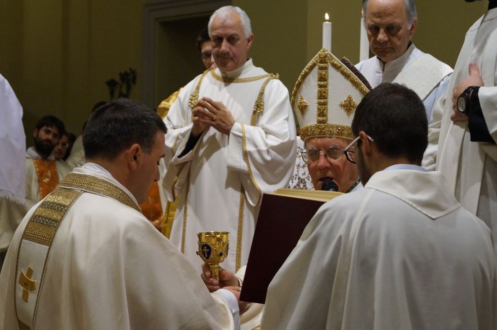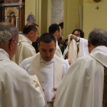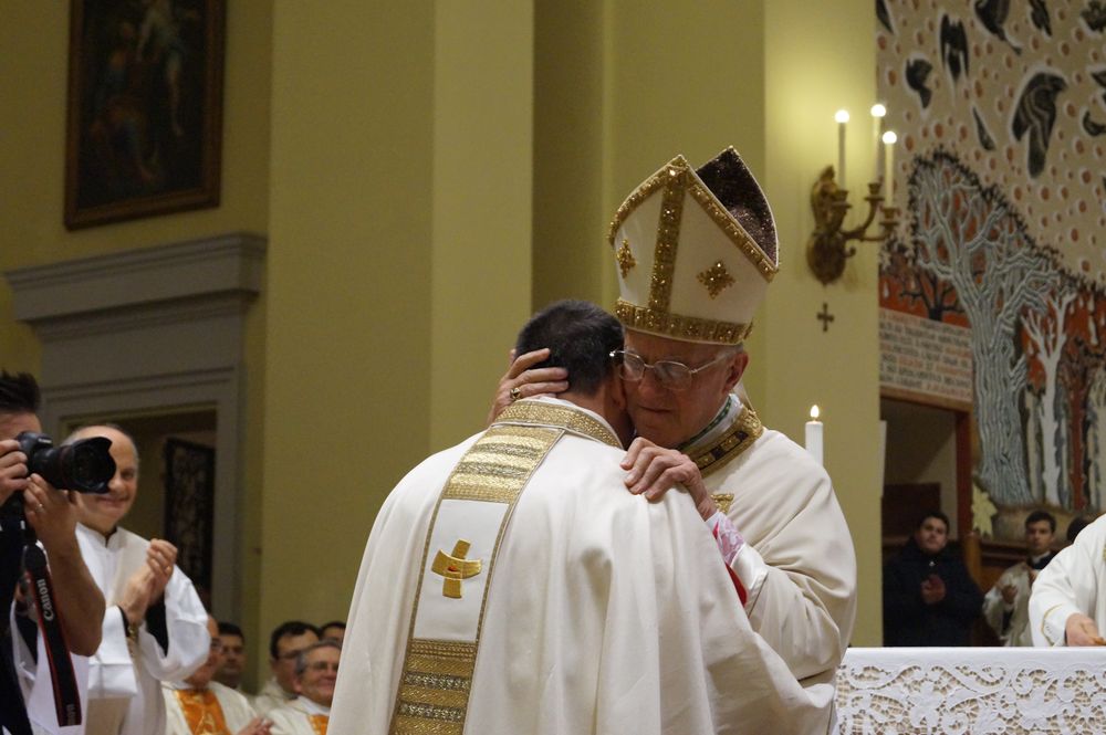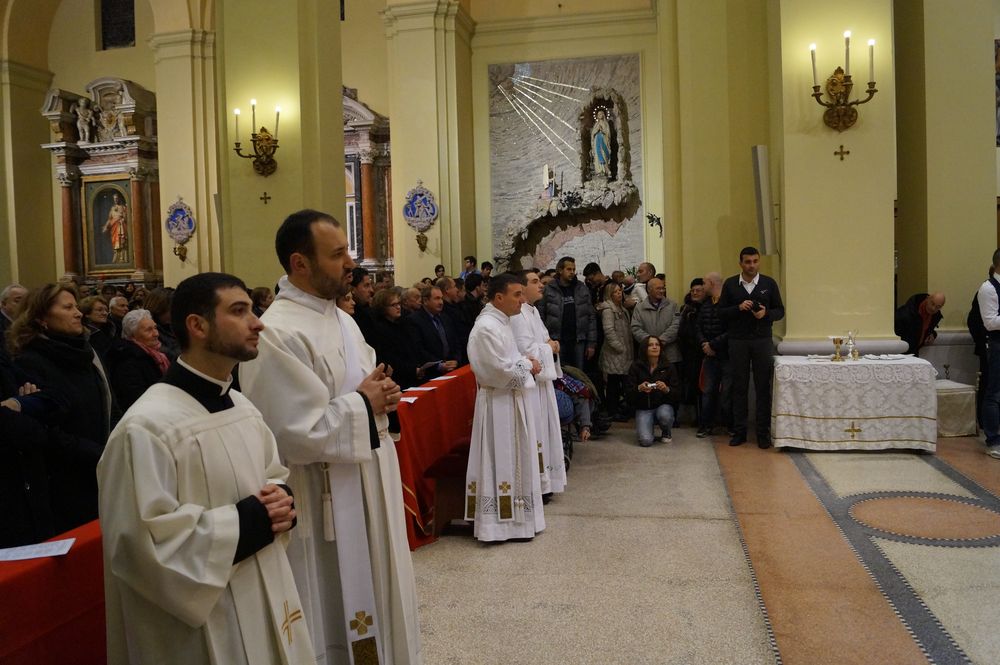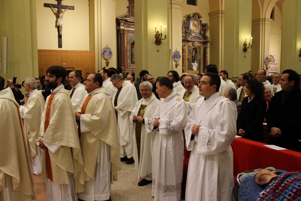 “Carissimi, ancora una volta la nostra Chiesa è in festa per l’ordinazione sacerdotale di alcuni suoi figli. Saluto tutti con vivo affetto e con intensa gioia e mi rallegro con i tre prossimi preti: Don Matteo Calvaresi, Don Giuseppe Giudici, Don Roberto Traini. Ringrazio le loro famiglie, le loro comunità parrocchiali ed i Seminari che li hanno preparati a questo grande momento.