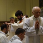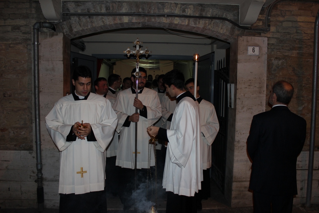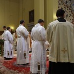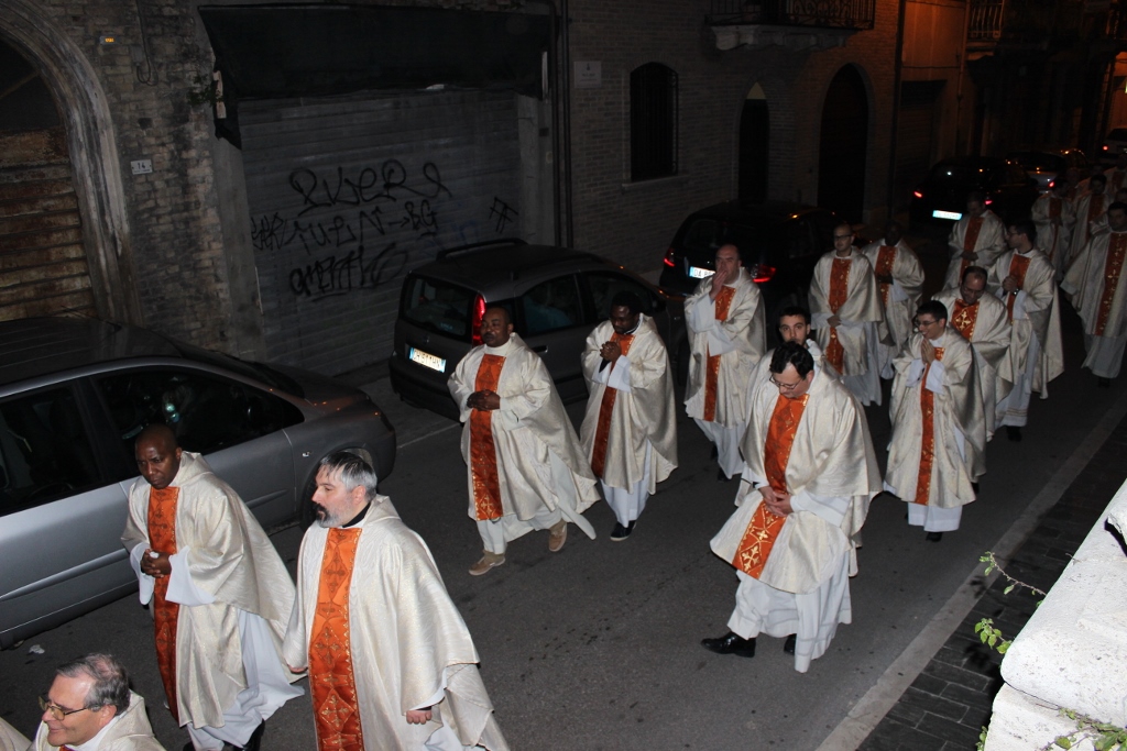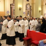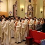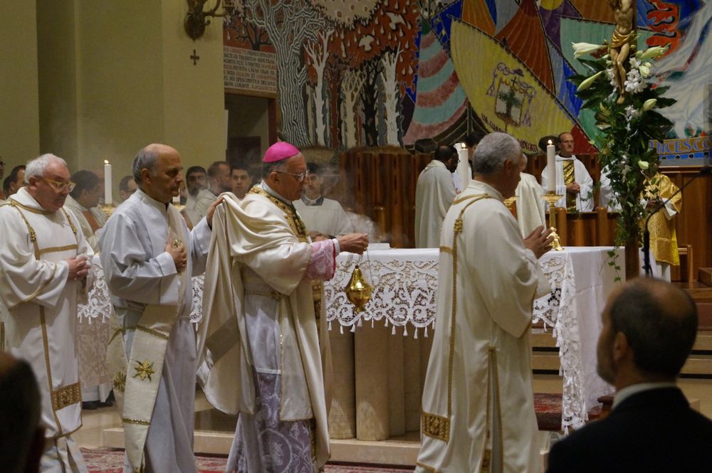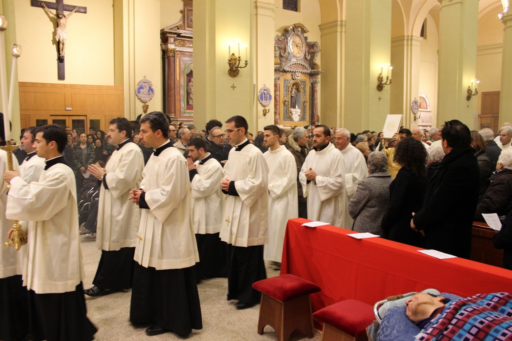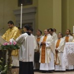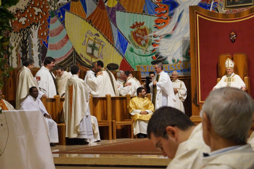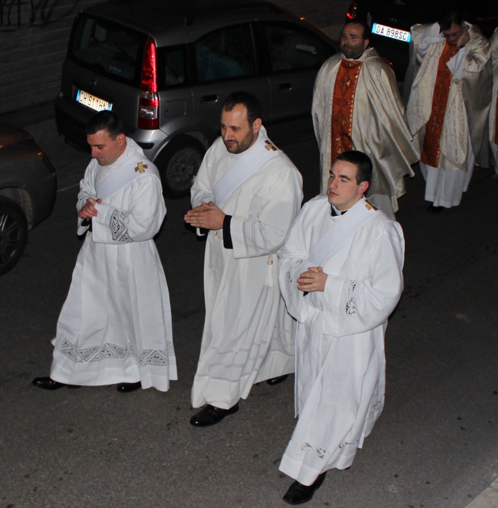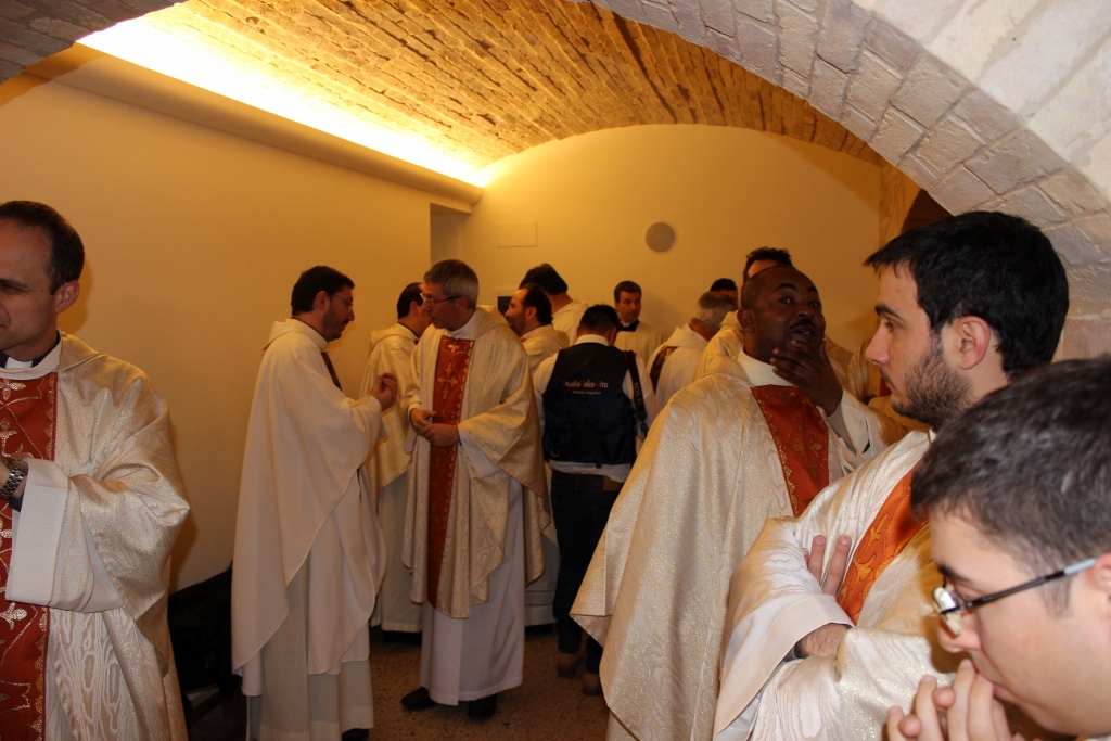 “Carissimi, ancora una volta la nostra Chiesa è in festa per l’ordinazione sacerdotale di alcuni suoi figli. Saluto tutti con vivo affetto e con intensa gioia e mi rallegro con i tre prossimi preti: Don Matteo Calvaresi, Don Giuseppe Giudici, Don Roberto Traini. Ringrazio le loro famiglie, le loro comunità parrocchiali ed i Seminari che li hanno preparati a questo grande momento.