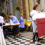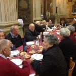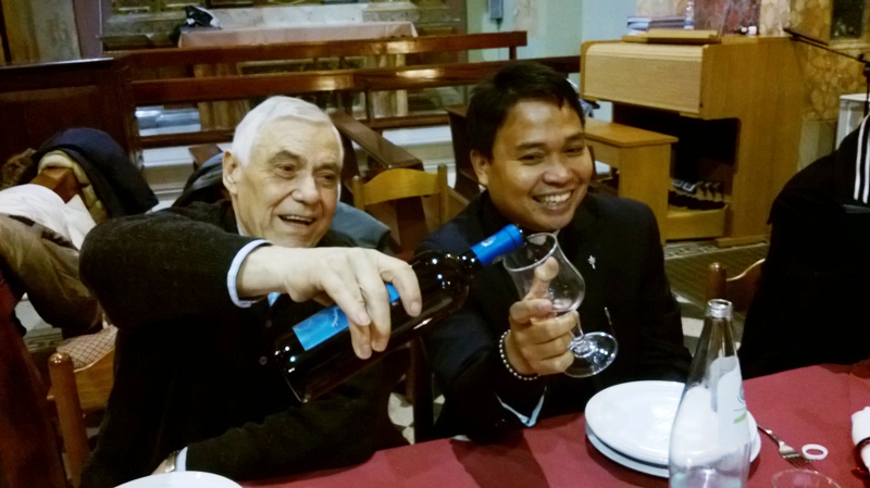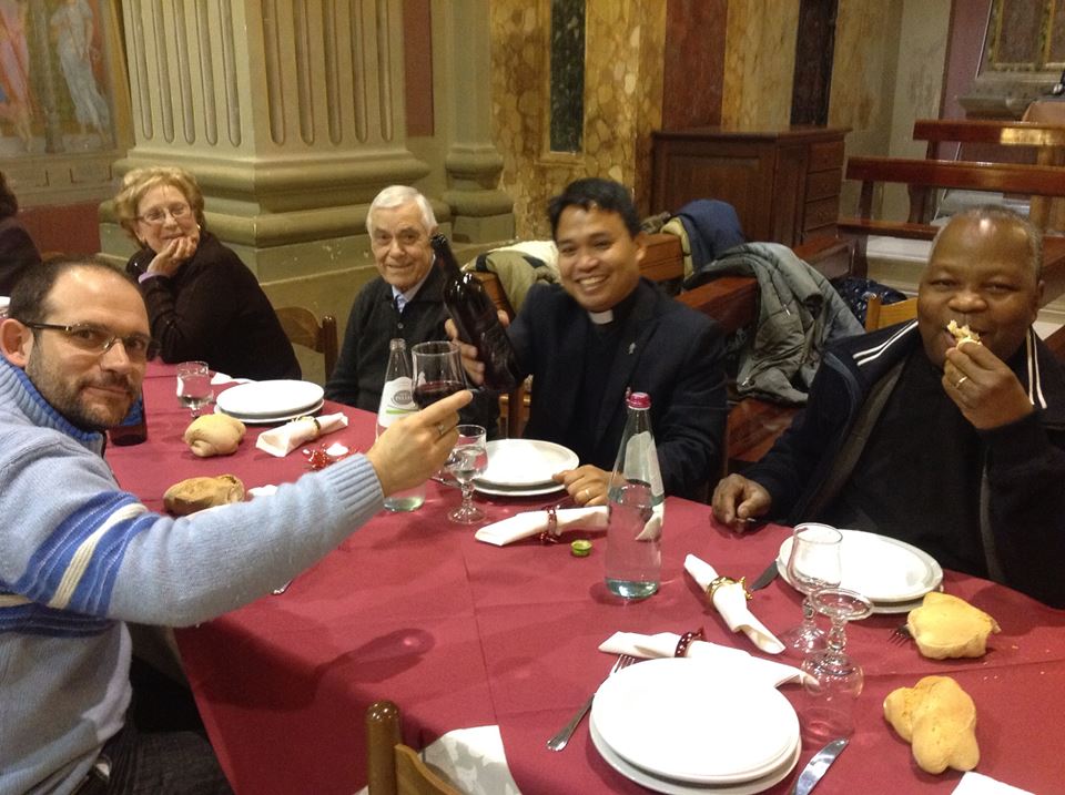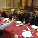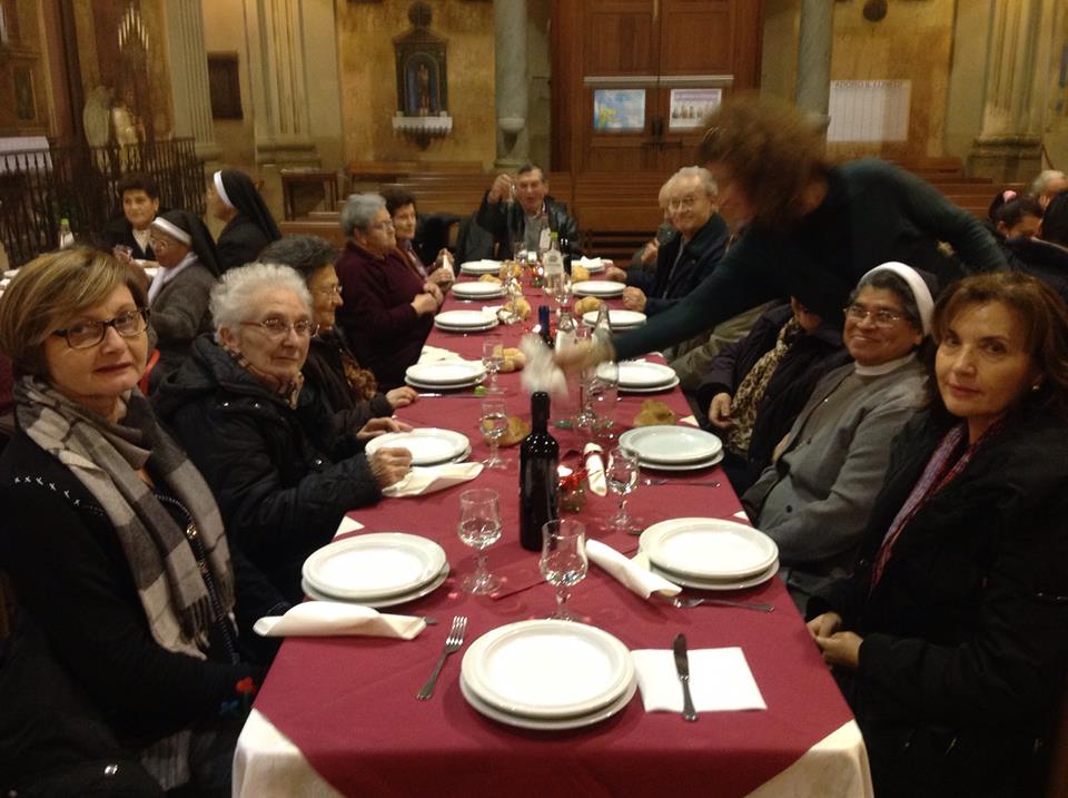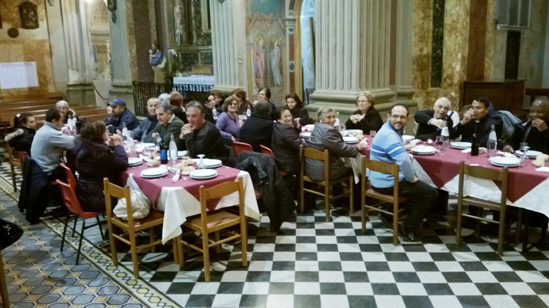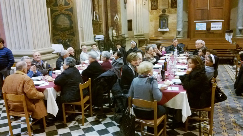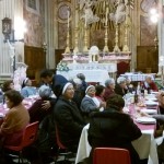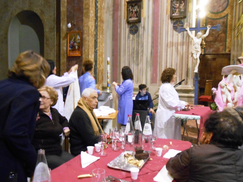 La serata si è conclusa nella festa e le emozioni vissute sono ben espresse dalle parole di Straccia Quintilio, Segretario del Consiglio Parrocchiale, che per la cena si è messo a disposizione come cameriere:” Abbiamo avuto una bellissima occasione per capire cosa significa il mettersi al servizio. Grazie ai giovani che hanno servito, ho avuto la conferma che “i giovani non sono tutti uguali”, ce ne sono fortunatamente molti che sanno già cosa significa AMARE. Grazie agli anziani che hanno accolto l’invito di Don Alfredo ho avuto la conferma che molti di loro la pensano come me riguardo ai giovani! Qualcuno è rimasto scandalizzato perchè il tutto si è svolto nella casa di Dio. Beh, io penso, invece, che Dio abbia gioito del fatto che giovani ed anziani hanno fatto festa insieme nella sua casa, con uno uno SPIRITO DI COMUNIONE e AMORE che in poche altre occasioni ho respirato. Grazie Don Alfredo Rosati!”.