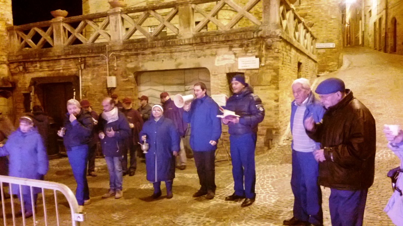 ACQUAVIVA PICENA – Grande festa nella parrocchia di Acquaviava per il Santo Patrono San Niccolò, il 6 dicembre. Giovedì 5 dicembre, dopo la messa delle 18:30 per la Novena dell’Immacolata, celebrata da don Gianni Capriotti, il parroco, don Alfredo, ha dato appuntamento a tutti per le ore 21 in piazza San Niccolò per festeggiare il patrono, con la benedizione del Falò in suo onore, da parte di don Gianni Capriotti, mangiando fava n’greccia e bevendo punch e vin brulé offerti dall’associazione San Francesco presieduta da Delio Camela, mentre i cantori di Sant’Antonio allietavano la serata con canti della tradizione popolare.