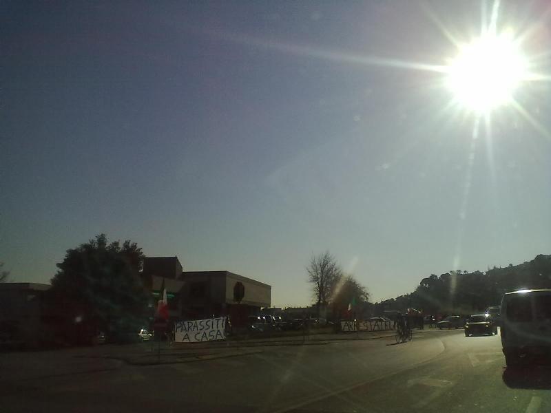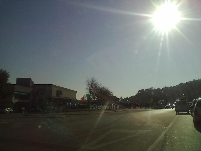 “Siamo qui per manifestare in modo pacifico e chiedere le dimissioni del Governo!” – ci dice uno dei manifestanti. Alle macchine in coda viene distribuito materiale informativo e l’invito ad unirsi alla protesta. “Qualora il Governo dovesse ottenere la fiducia, – ci spiegano -mercoledì la protesta si sposterà davanti a Montecitorio”.