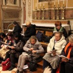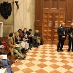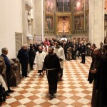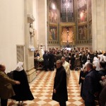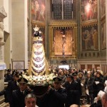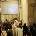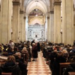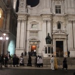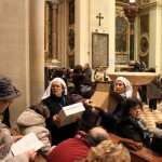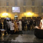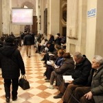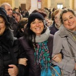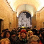 Alle ore 17.30 le porte sono state aperte e piano piano i pellegrini, sotto lo sguardo attento dei ragazzi della Protezione Civile, sono defluiti all’interno della Chiesa.