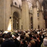 Mentre sono stare intonante li litanie Lauretane, le migliaia di fedeli hanno salutato Maria sventolando i fazzoletti bianchi.