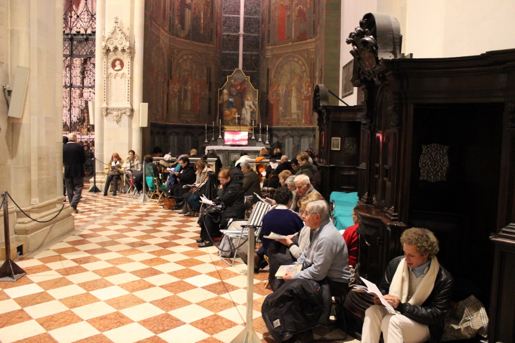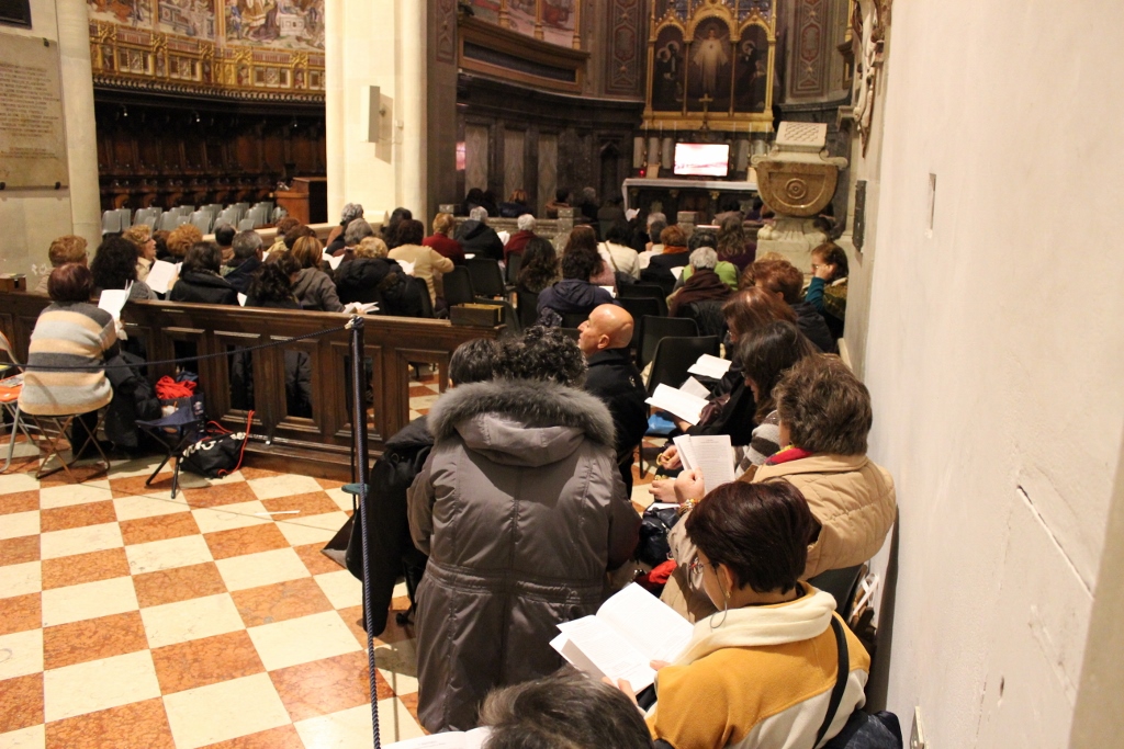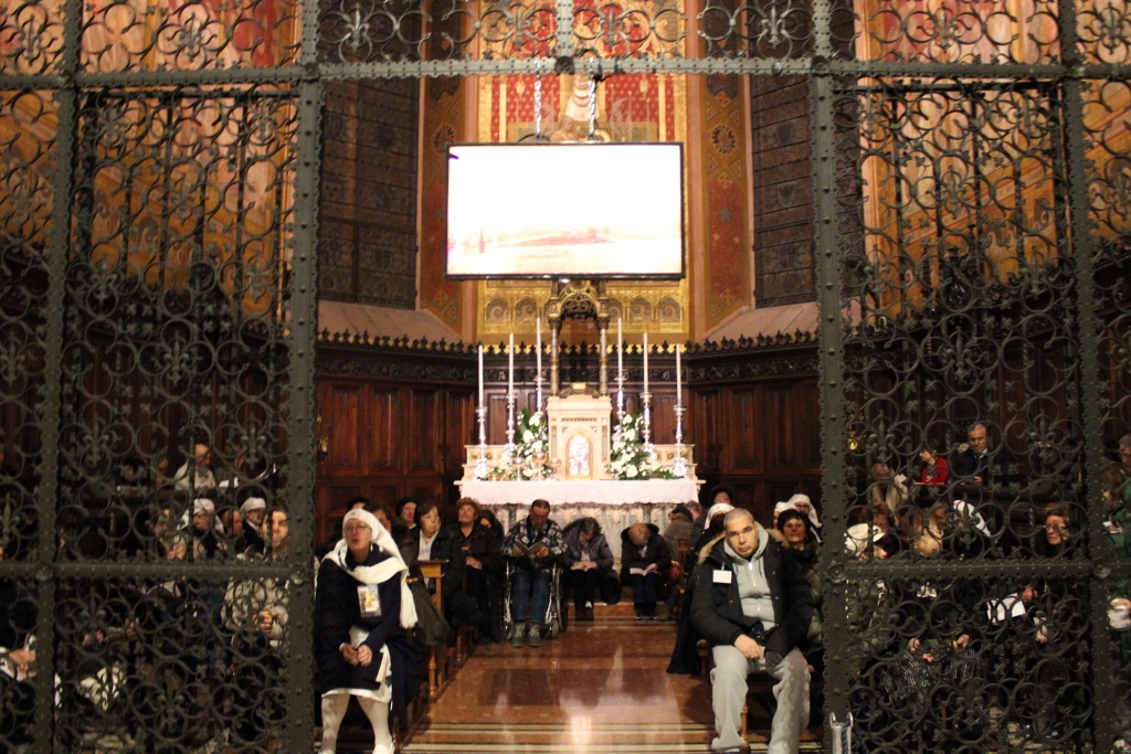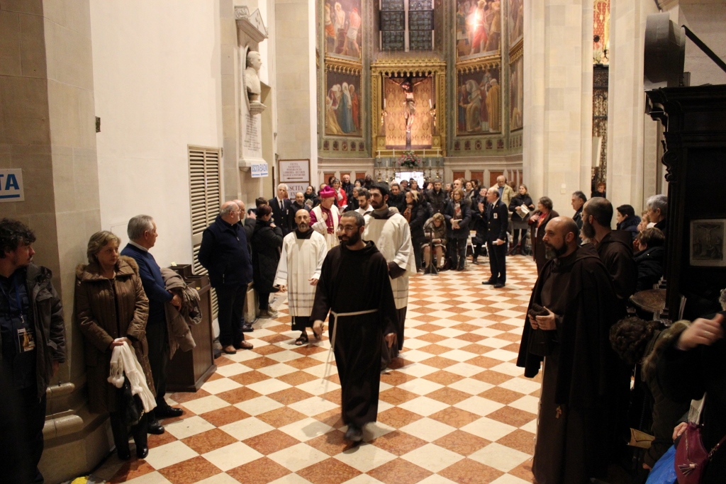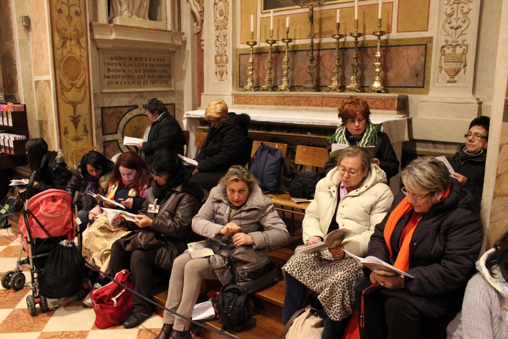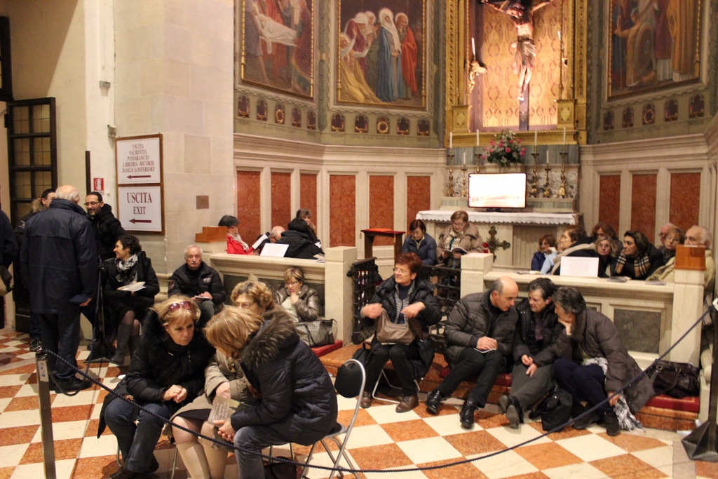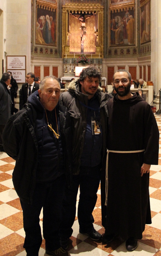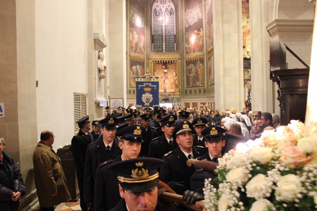 Alle ore 17.30 le porte sono state aperte e piano piano i pellegrini, sotto lo sguardo attento dei ragazzi della Protezione Civile, sono defluiti all’interno della Chiesa.