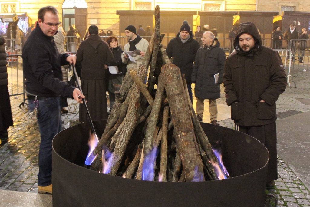 Alle ore 19.00 fuori dal Santuario si è tenuta la tradizionale accensione del fuoco e la sua benedizione.