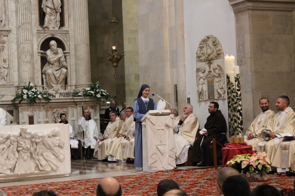 L’evangelista Luca ci porta in una casa, che abbiamo qui tra noi e ci raffigura due protagonisti Dio e una giovane Donna promessa sposa. Il fatto che dovrebbe meravigliarci è che sono due protagonisti alla pari: Dio fa dipendere la storia della salvezza dalla risposta di una ragazza.