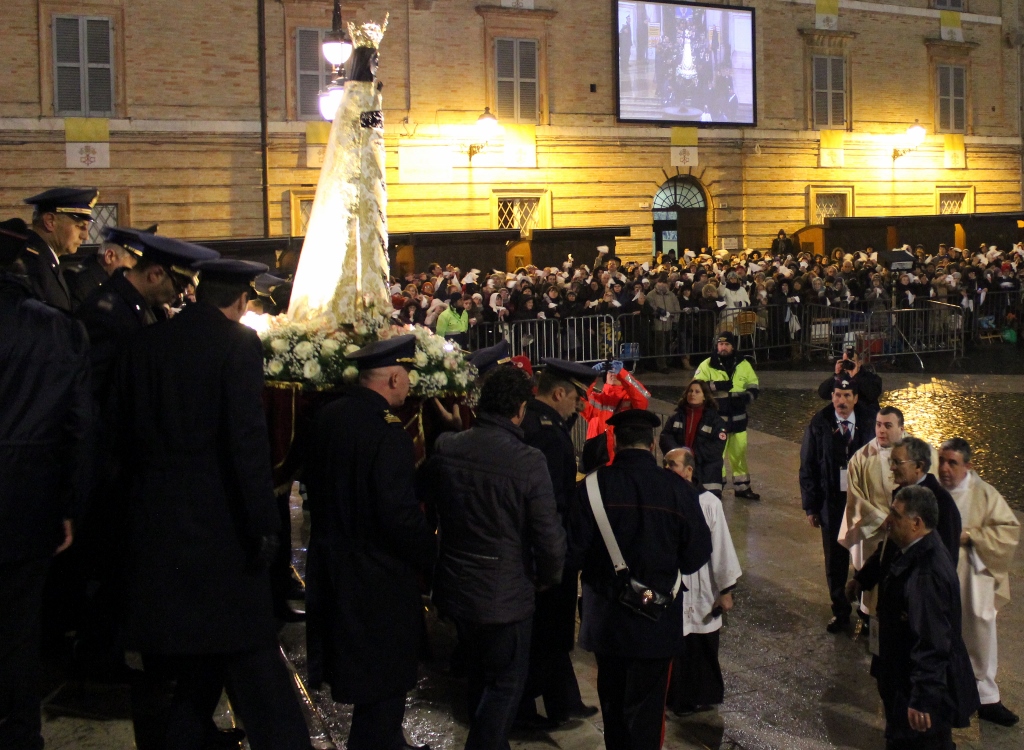 Al termine della celebrazione, la Statua della Madonna di Loreto, portata a spalle dagli avieri, è passata in mezzo a migliaia di pellegrini. È stato un gesto attraverso il quale si è resa visibile la materna vicinanza di Maria nei confronti di ciascuno di noi