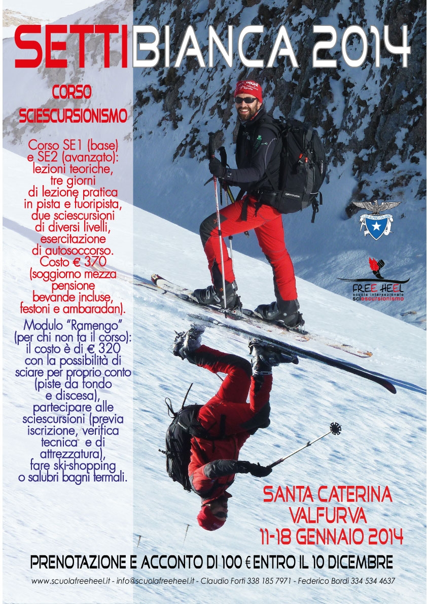 La Scuola Intersezionale Sci-Escursionismo “FREE HEEL” ha organizzato anche quest’anno la “SettiBianca” che si svolgerà dall’11 al 18 gennaio 2014 a Santa Caterina Valfurva.