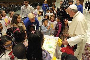 perché, cosa strana, il Bergoglius Franciscus sa ridere di gusto, sa afferrare il lato umoristico delle situazioni, vivere le difficoltà con lo sguardo ilare; non credo si tratti di allergia patogena quanto piuttosto di un sano contagio che aiuta a riscoprire le vene, forse polverose, dell’animo del fanciullo che abita in ciascuno di noi e ha bisogno di imparare a sorridere alla vita;