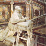 Veniamo ora alla mangiatoia. È il luogo dove si poneva il cibo da dare agli animali. Ma anche qui non siamo davanti a qualcosa di casuale. Infatti quel bambino che lì giace, darà il suo corpo come cibo di salvezza per gli uomini. La reliquia della mangiatoia si trova in una zona ipogea sotto l’altare maggiore di Santa Maria Maggiore. E’ molto significativo che la statua del Papa Pio IX, che ha voluto questa sistemazione, sia inginocchiato davanti alla reliquia della mangiatoia ma guardi allo stesso tempo l’altare, dove durante ogni messa si rinnova il mistero dell’incarnazione e Gesù si dona come cibo di salvezza.