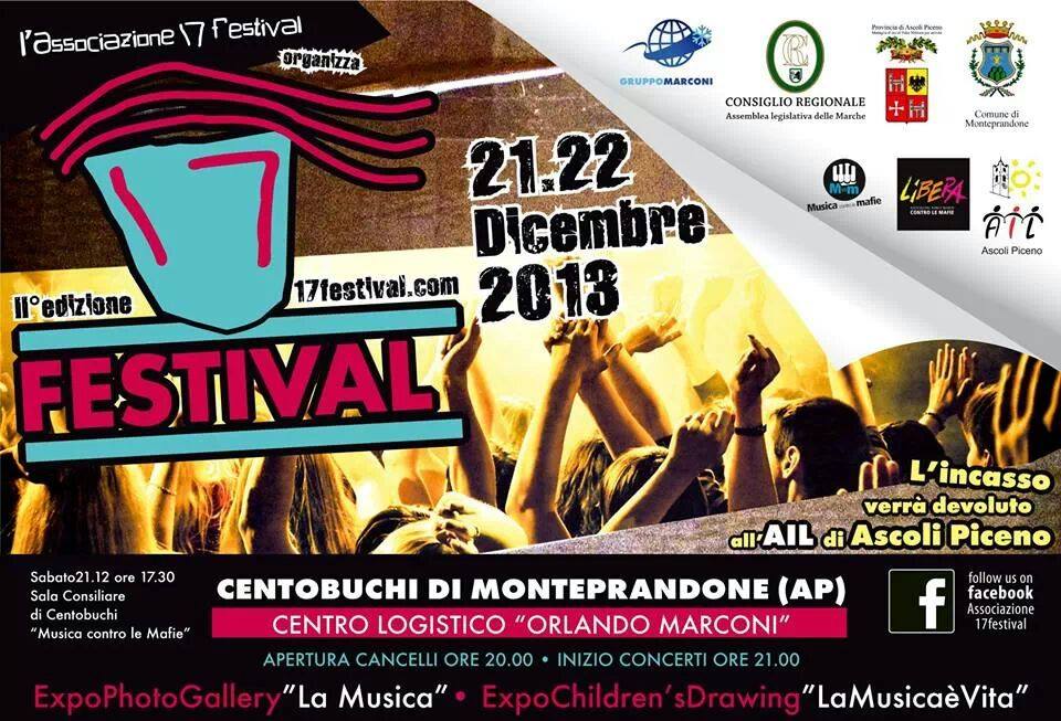 Per informazioni e prevendite, consultare www.17festival.com e su Facebook ‘Associazione 17 Festival’. Prevendite presso ulteriori punti vendita, nelle regioni Marche e Abruzzo.