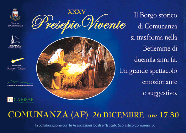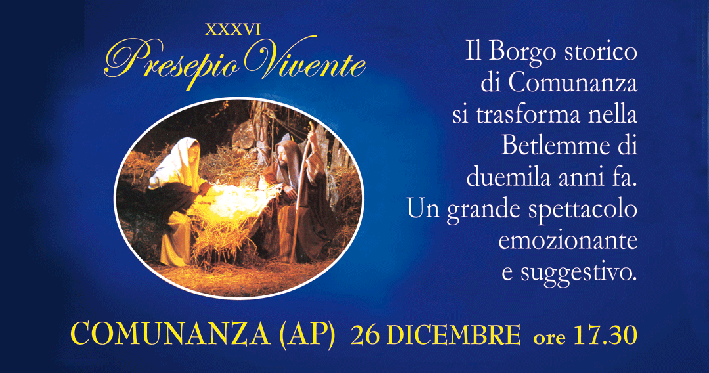 COMUNANZA – Puntuale e spettacolare anche quest’anno ,ormai giunto alla sua trentaseiesima edizione Il Presepe Vivente di Comunanza si presenta nella sua veste tradizionale per far rivivere grazie alle sue scene momenti coinvolgenti. E’ il Presepe Vivente fra i più antichi e conosciuti delle Marche, anche se negli anni, è stato imitato da diversi paesi.
