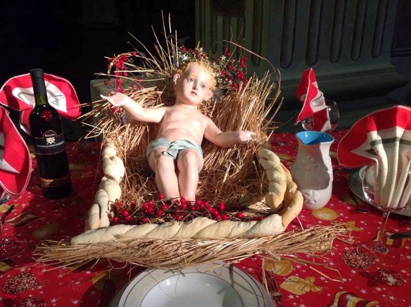 Usando il tavolo apparecchiato, posto a fianco dell’altare, come una metafora della vita don Alfredo ha poi fatto tre auguri ai fedeli:“Durante il periodo dell’Avvento, abbiamo aggiunto quattro sedie intorno al tavolo, una per ogni domenica ,ogni sedia sta a significare che tutti sono invitati, dal prete all’immigrato, dal povero e ammalato all’ultimo arrivato a cui nessuno pensa, e, come potete vedere, il tavolo è stato ben apparecchiato, in stile natalizio, per renderlo invitante; allora il primo augurio che vi faccio è quello di poter preparare una tavola che inviti, una tavola che metta voglia di mettersi a sedere, che faccia sentire accolto anche l’ultimo, chi è solo. Sul tavolo è stato posto il Bambin Gesù in una cesta fatta di pane ed ecco il secondo augurio: il pane, c’è una tipica espressione dialettale “magnace lu pa’”, che cosa significa? In questa vita frenetica ci siamo abituati a volere le cose subito, belle, attraenti a divorare tutto, lo facciamo e non siamo felici, e allora vi auguro di “mangiarci il pane” con la vita e cioè di assaporare ogni cosa, di assaporare la vita, di fermarvi a riflettere sulle cose, sulla loro importanza per poterne godere insieme agli altri. Infine come terzo augurio, che possiate porre al centro della vostra tavola, della vostra vita, Gesù, perché possiamo anche mangiare intorno a grandi tavolate con tanti amici ma se non c’è Gesù il cibo, il suo sapore si ferma sul palato, mettere ogni giorno Gesù al centro della vostra vita, renderà ogni giorno della vostra vita una festa, ogni giorno della vostra vita un Natale”.