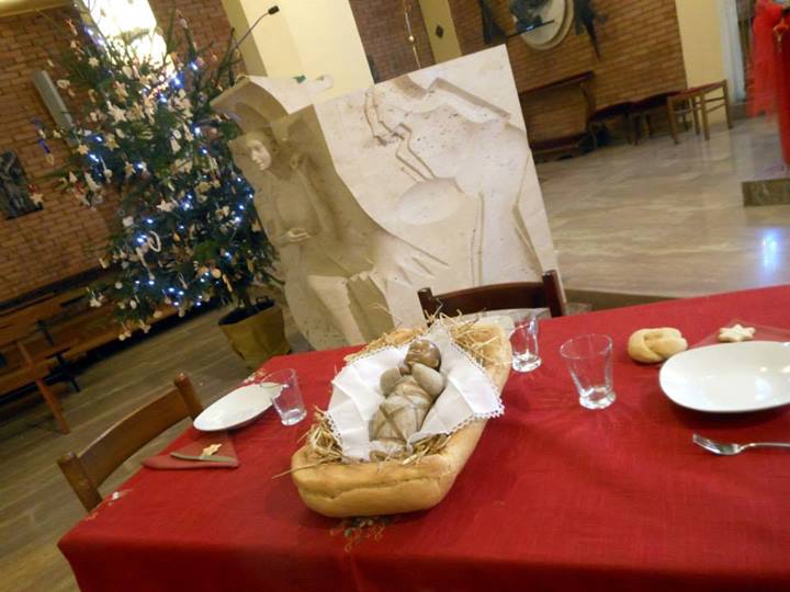 Di domenica in domenica, sono stati apparecchiati con la corona d’Avvento, segno della luce della fede che ci permette di andare incontro al Signore che viene. Poi il libro della Parola a ricordare il desiderio di Dio di comunicare con l’uomo. Ad abbellire la tavola i fiori della festa, espressione della gioia per la venuta di Gesù. Sono state aggiunte le sedie per fare spazio all’accoglienza e invitare alle diverse iniziative del tempo di avvento. Infine è stato posto al centro della tavola il pane della fraternità, a dire l’attenzione all’altro in cui ama nascondersi il Figlio di Dio, e nel pane è stato messo il Bambinello! Il messaggio per ogni persona e comunità è quello di mettere nelle nostre tavole la presenza di Gesù attraverso chi viene, chi bussa, chi chiede perchè povero di pane e di affetto.