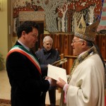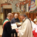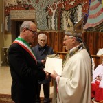 Il messaggio di Papa Francesco consegnato dal Vescovo Gestori ai politici: “In questo mio primo Messaggio per la Giornata Mondiale della Pace, desidero rivolgere a tutti, singoli e popoli, l’augurio di un’esistenza colma di gioia e di speranza. Nel cuore di ogni uomo e di ogni donna alberga, infatti, il desiderio di una vita piena, alla quale appartiene un anelito insopprimibile alla fraternità, che sospinge verso la comunione con gli altri, nei quali troviamo non nemici o concorrenti, ma fratelli da accogliere ed abbracciare.