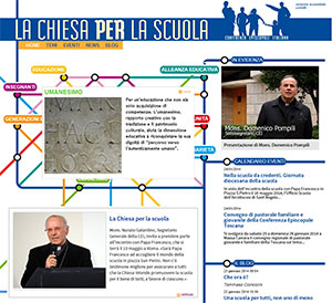 Sette parole chiave – autonomia e sussidiarietà, educazione, alleanza educativa, insegnanti, generazioni e futuro, comunità, umanesimo – quasi una “bussola” per la scuola. Si presenta così il nuovo sito predisposto dalla Cei per la manifestazione del prossimo 10 maggio, che vedrà il mondo della scuola in piazza san Pietro con Papa Francesco. La rappresentazione grafica è quella di una cartina della metro, con le fermate marcate dalle linee colorate che s’intrecciano. “Cliccando” su www.lachiesaperlascuola.it, ci si può orientare nei meandri di una realtà con cui ognuno di noi ha avuto a che fare per una parte consistente della propria vita, serbandone magari un grato ricordo, ma che oggi rischia di essere una galassia sconosciuta, e nella peggiore delle ipotesi obsoleta, tanto vien relegata ai margini dalle istituzioni e dall’opinione pubblica. Ad arricchire il nuovo sito, materiali di approfondimento, iniziative sul territorio e indicazioni pratiche. “Difendere e promuovere la scuola, a cui – anche al tempo della crisi economica – è legata la salute pubblica e la stessa democrazia”: questa la convinzione che anima la manifestazione di maggio, in cui il variegato “popolo della scuola” sarà accolto dal Papa. “Non c’è testimone migliore per assicurare a tutti che la Chiesa intende promuovere la scuola per il bene di tutti, a favore di ciascuno”, osserva monsignor Nunzio Galantino, segretario generale ad interim della Cei, chiamando a raccolta al grande appuntamento. “Tutti quelli che pensano che oggi, ancor prima della logica del profitto, sia importante riattivare la logica della crescita della persona, si ritroveranno a Roma, e sarà una grande festa”, prevede monsignor Domenico Pompili, sottosegretario della Cei e direttore dell’Ufficio nazionale per le comunicazioni sociali, nel video di presentazione dell’iniziativa.