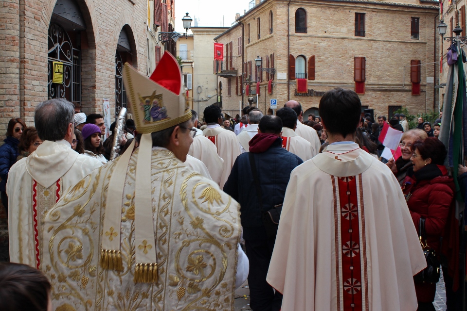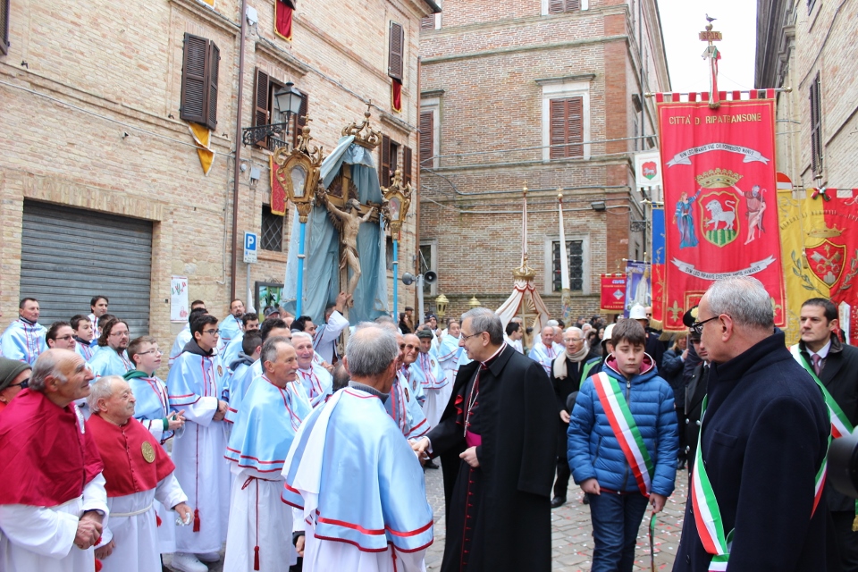 Con la meditazione presso Santa Maria della Valle, il nostro Vescovo si è mosso in processione lungo un Corso Vittorio Emanuele addobbato a festa per l’occasione. La processione con le confraternite, le associazioni, i sacerdoti delle Parrocchie ripane e le autorità comunali, ha avuto come destinazione la Cattedrale cittadina per la Celebrazione Eucaristica.