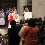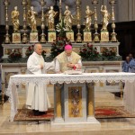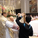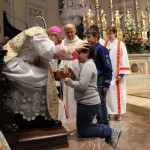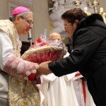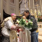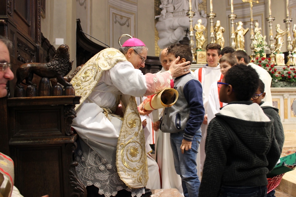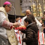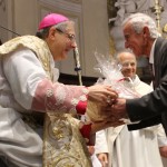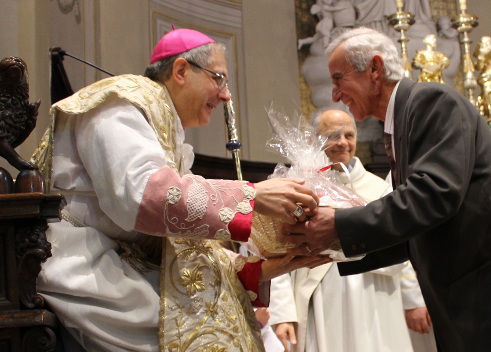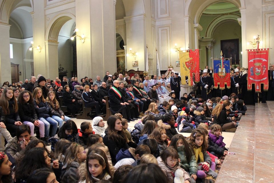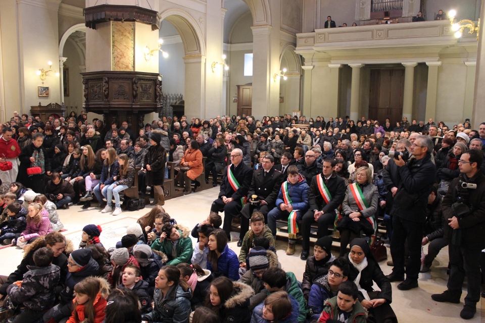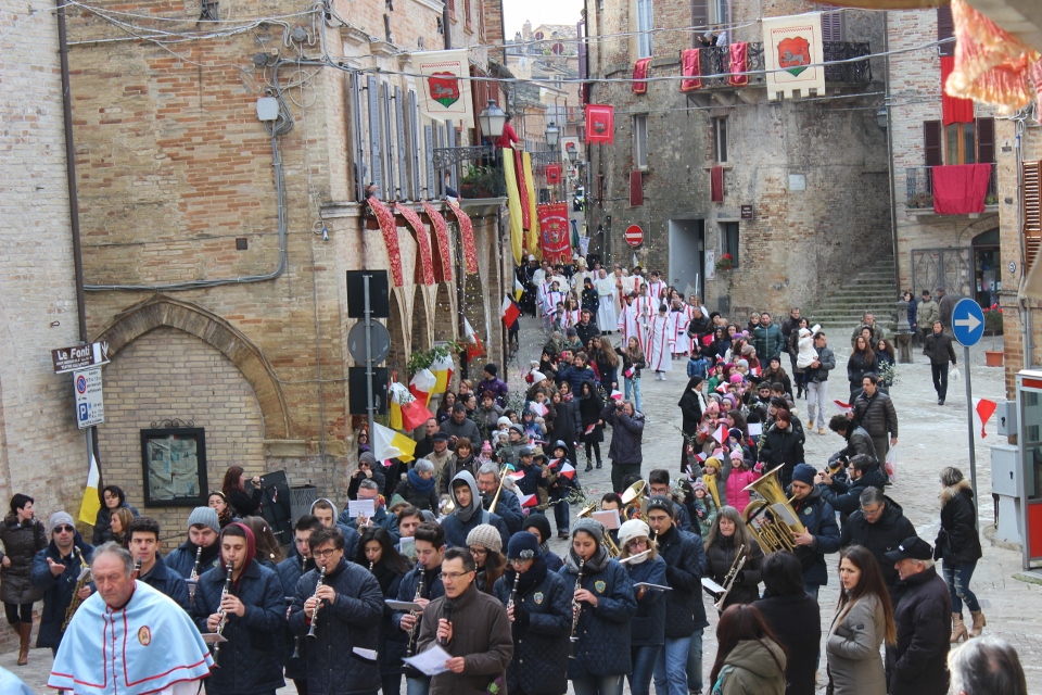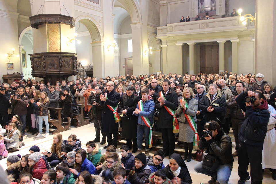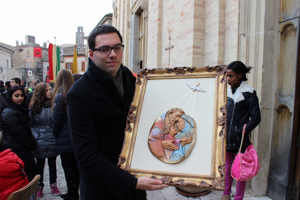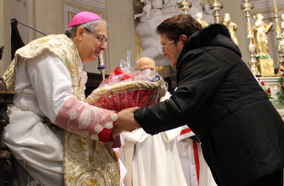 È seguita poi la consegna dei doni durante l’offertorio da parte dei giovani e delle associazioni, senza dimenticare la consegna della pergamena augurale e della Sacra Famiglia, opera del Radic, offerta dai presbiteri di Ripatransone.