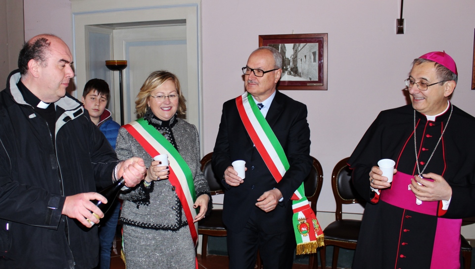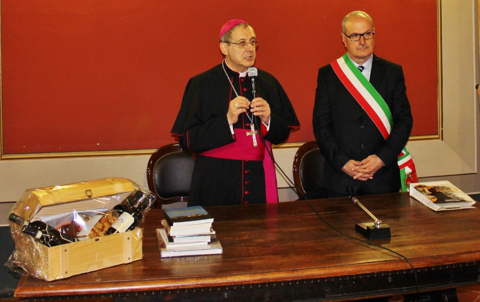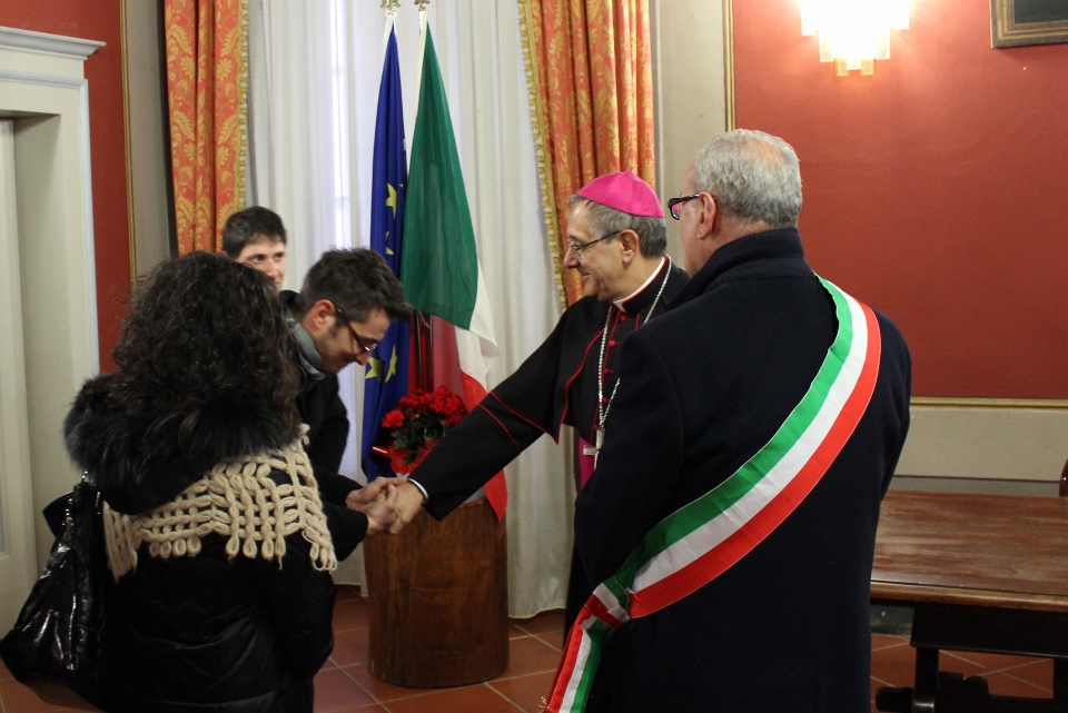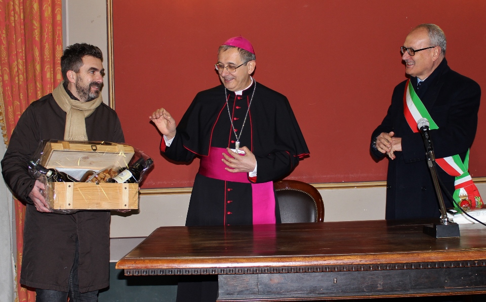 Il Sindaco Bruni ha presentato al Vescovo le problematiche, ma soprattutto le bellezze di Ripatransone: la sua storia, la tenacia della gente, la sua importanza nell’ambito della Chiesa Truentina. Mons. Bresciani ha risposto invitando i presenti ad affrontare le difficoltà stando uniti, prendendo come esempio proprio la tenacia della popolazione Ripana.