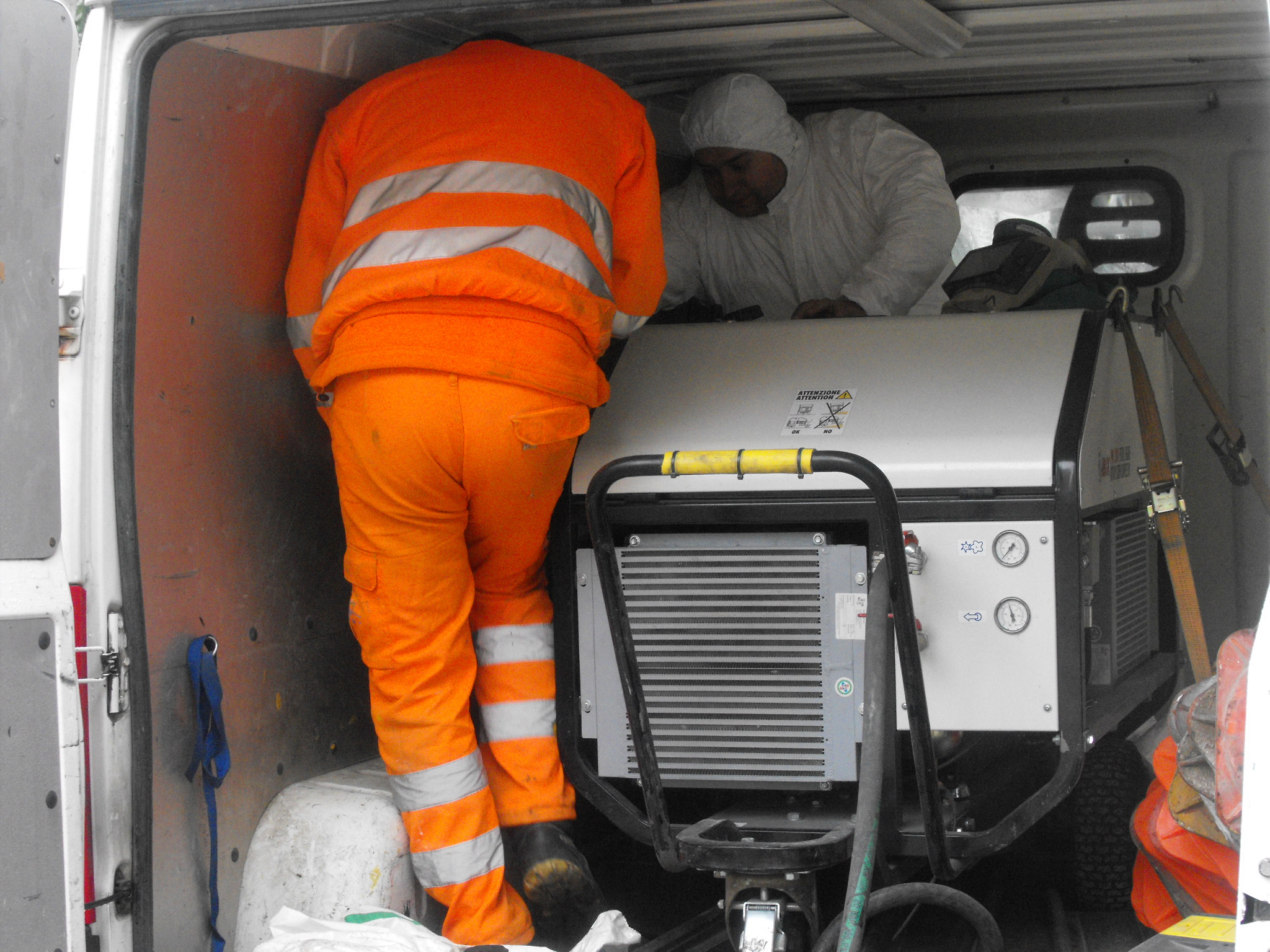 Il lavoro di pulizia da graffiti e imbrattamenti vari viene realizzato con un’apposita apparecchiatura in grado di rimuovere i segni lasciati dalla vernice su diversi tipi di superfici. Si tratta di un sistema di pulitura a doppia funzione (idrolavaggio con carbonati e altri minerali e eco-sabbiatura a secco) concepito per rispondere a tutte le esigenze di pulitura selettiva di vetrate, profili in alluminio anodizzato e marmi lucidi non porosi, strutture in acciaio inox o alluminio, ma anche paramenti lapidei, strutture ed elementi architettonici in pietra, marmo e laterizi particolarmente delicati.