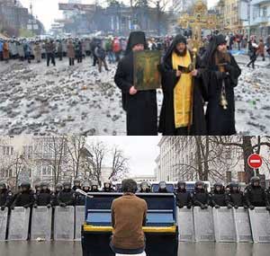 Il cuore dell’uomo è un mistero. Non c’è solo la musica di Einaudi in piazza Maidan. Ci sono anche la croce e la preghiera. In pochi forse lo hanno notato. C’è una tenda adibita a cappella ecumenica dove ininterrottamente si prega per la pace e la giustizia in Ucraina. Dal giorno in cui sono iniziate le manifestazioni, le chiese greco-cattoliche sono rimaste aperte 24 ore su 24 per accogliere i manifestanti, offrire un rifugio e pasti caldi. Schierati in prima fila con la sola arma dell’amore al fratello e al Paese ci sono sacerdoti di varie confessioni cristiane che nonostante le minacce, hanno deciso di non abbandonare il loro Paese a un destino di violenza e sopraffazione. “Siamo, siamo stati e saremo sempre con il nostro popolo”, ha detto Sua Beatitudine Sviatoslav Shevchuk al presidente Yanukovych. C’è una storia dell’umanità che percorre rivoli nascosti e sconosciuti. E il fiume dell’umanità scorre anche con la croce e la preghiera. Forse fanno meno rumore di un lancio di mortaio. Emergono sicuramente con difficoltà sulle cronache internazionali. Ma sono il segno indicativo di un popolo, di un agire silenzioso e presente, di un modo pacifico e misterioso di scrivere pagine di una storia nuova.