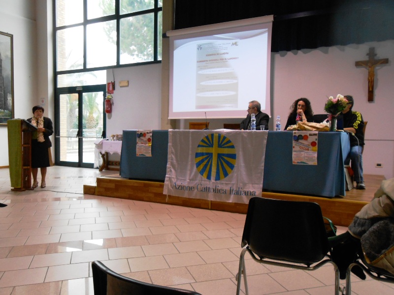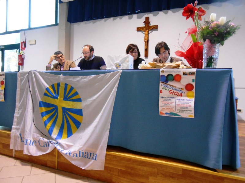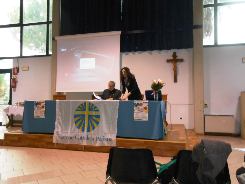 Poi c’è il termine Cattolica che oltre a fare riferimento alla Chiesa Cattolica ha anche un significato letterale: universalità, che rimanda alla missione degli uomini  per l’unità del genere umano, all’andare verso coloro che non ne fanno ancora parte. Unità e inclusione, non certamente esclusione. Essere dell’associzaione e nell’associazione, rifuggendo da qualsiasi forma di personalismo, arrivismo, ricerca di affermazione di sé, di potere, di visibilità personale per tendere all’unità interna e includere chi è all’esterno ricercando l’unità secondo le finalità che siamo chiamati a portare avanti superando le divisioni che non rendono mai presente quell’unità della Chiesa per il quale Cristo ha pregato. Quindi l’AC rimanda a quella dimensione missionaria dell’agire del cristiano, che consiste nel rendere presente Gesù nel mondo affinché il mondo creda; andare verso tutti perché in Cristo non c’è più né giudeo né greco, né uomo né donna, né schiavo né libero; è vero che c’è il giudeo e che c’è il greco ma questo non diventa più elemento di divisione e contrapposizione perché siamo uno in Lui. Tutto questo si traduce nell’apertura dei gruppi alle necessità della parrocchia e di tutti coloro che sono presenti sul territorio, significa la capacità di pensare e di attuare azioni che coinvolgono altri, soprattutto i cosidetti lontani, significa una presenza attenta alle istituzioni sociali e civili stimolandole ad una presenza di autentico servizio a coloro che sono più bisognosi. Dobbiamo esserne consapevoli dovete rivendicare il giusto spazio, per questo esercizio di corresponsabilità attenta e attiva di una chiesa che è amante dell’uomo anche così presentiamo il volto di questa chiesa attenta e attiva.