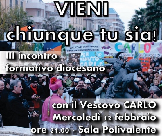 L’appuntamento per tutti è per mercoledì 12 Febbraio alle ore 21.00 presso la sala polivalente della Parrocchia del Sacro Cuore a Centobuchi. Guiderà l’incontro il nostro Vescovo Carlo.