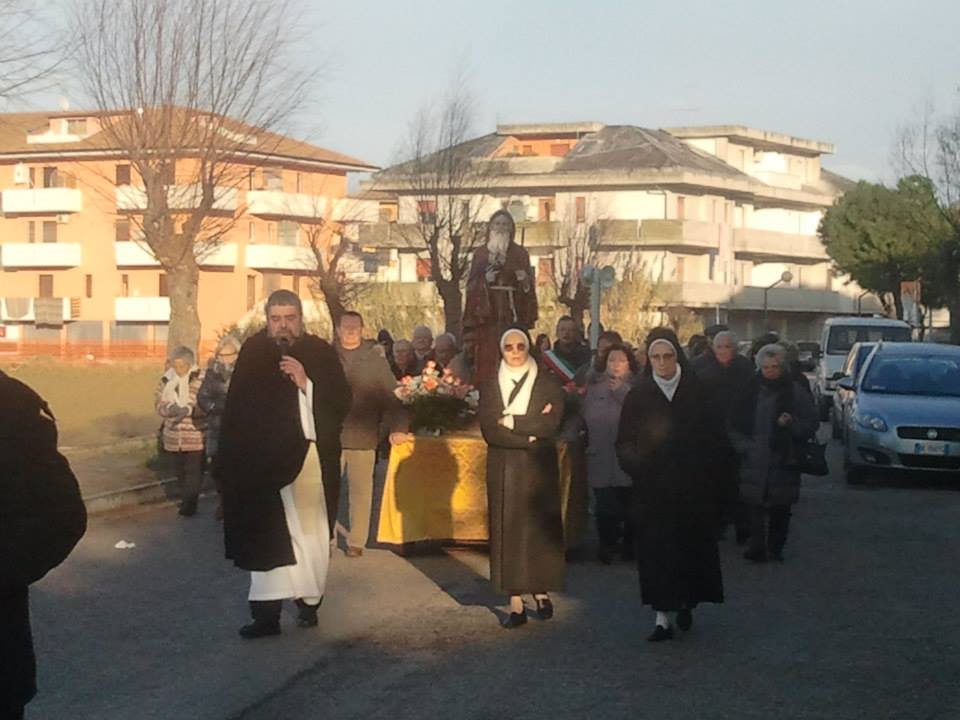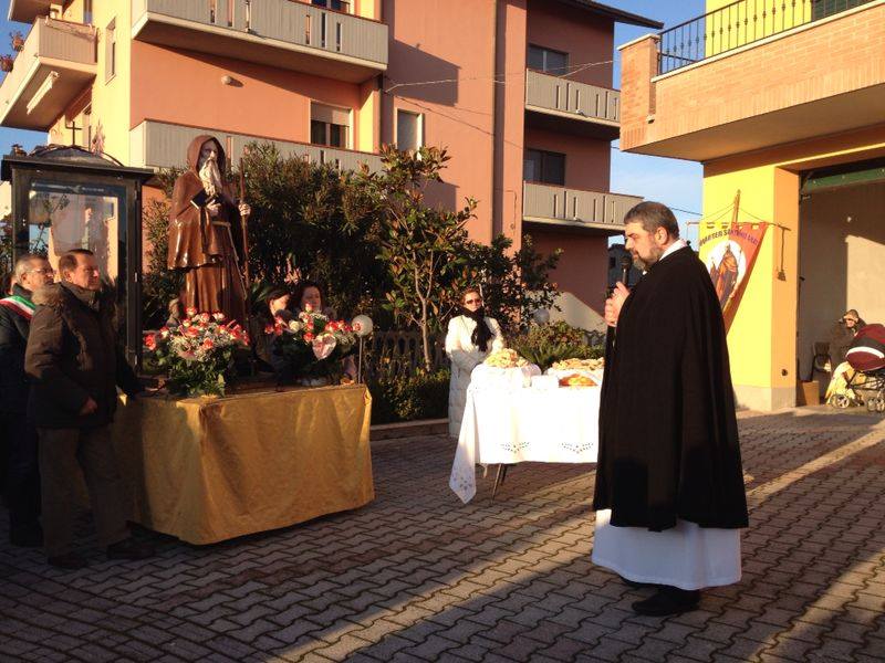 La statua del Santo è stata condotta in processione per le vie del quartiere Sant’Antonio al cospetto di uno stuolo di fedeli e dei loro amici animali. Presenti le autorità religiose e civili: Don Patrizio Spina, che ha presidiato la cerimonia e il Sindaco di Martinsicuro, Paolo Camaioni. Al termine della processione, molti degli animali domestici e di fattoria hanno ricevuto la benedizione del Santo protettore per intercessione del parroco del Sacro Cuore di Gesù, Don Patrizio. Come da tradizione popolare, dopo l’aspersione con l’acqua santa, il sacerdote ha distribuito i “pani di Sant’Antonio” ritenuti miracolosi per la guarigione degli animali.
