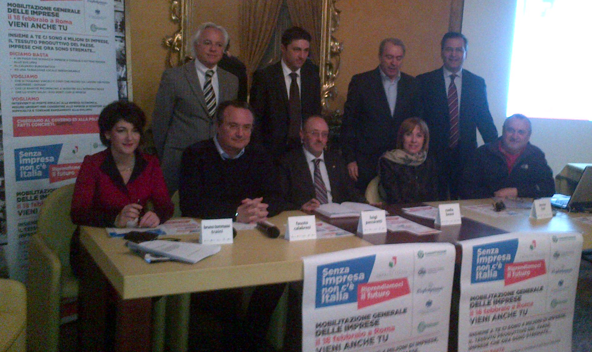 Il 18 febbraio a Roma la mobilitazione generale delle piccole e medie imprese dell’artigianato e del commercio. Rete imprese Italia di Ascoli Piceno ha presentato nella Sala Gialla della Camera di Commercio le iniziative prese sul territorio per aderire alla manifestazione nazionale di martedì 18. Erano presenti i presidenti e i direttori provinciali di tutte le associazione di categoria del Piceno che fanno parte di Rete Imprese Italia e hanno aderito alla manifestazione: Luigi Passaretti (Cna), Elena Capriotti (direttore di Confesercenti), Nadia Beani (Confartigianato), Bruno Luzi (CasaArtigiani), Fausto Calabresi (Confcommercio). La richiesta di interventi per il tessuto produttivo del paese rappresentato da milioni di imprese, è per Luigi Passaretti, neopresidente della Cna di Ascoli “Infrastrutture e formazione, che per il Piceno sono l’unica carta possibile per sperare in un’inversione di tendenza”.