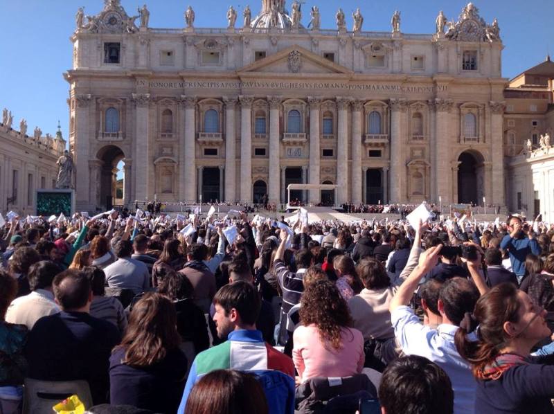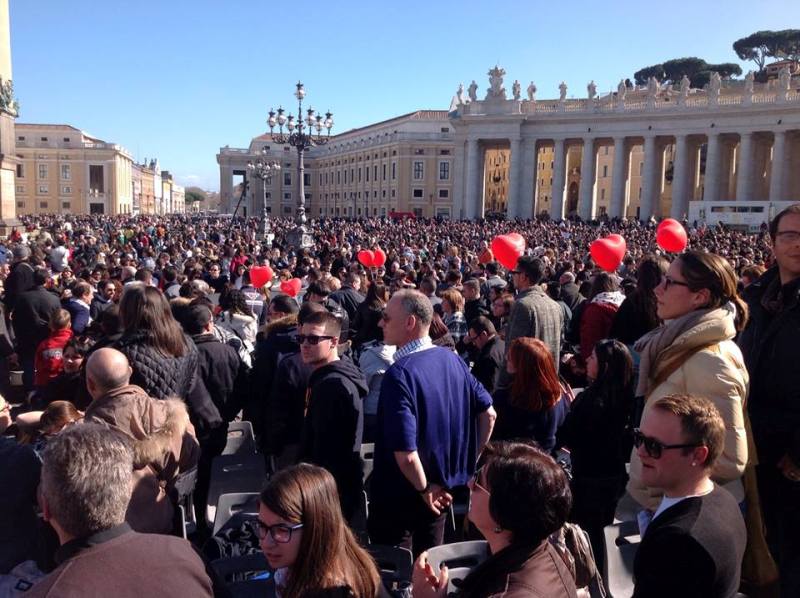 Il Papa, il futuro, la speranza, l’amore per sempre, la famiglia. Il bagaglio della vita di queste giovani coppie di fidanzati oggi si riempie di ciò che è necessario per continuare il cammino verso il “Sì” per sempre. C’è chi ringrazia e chi si porta a casa un tesoro ancora da scoprire, ma che potrà conoscere meglio condividendolo negli incontri di preparazione al matrimonio nelle rispettive parrocchie. Così oggi, sotto un inaspettato sole primaverile, il colonnato del Bernini ha idealmente abbracciato il popolo dei fidanzati – trentamila hanno detto – venuti perché chiamati dal Papa a sperimentare la vicinanza della Chiesa al loro percorso di amore, che li condurrà alla scelta di vivere per sempre insieme nella via del matrimonio. Seduti l’uno accanto all’altro, stringendo il cuscinetto per le fedi, hanno atteso con gioia e pazienza l’arrivo di Francesco, preceduto dalle testimonianze di fidanzati e sposi che – dice una fidanzata – mi ha fatto sentire come un unico mondo, con la sensazione che ci conoscessimo da sempre. Poi le canzoni di Tosca, le danze e la recitazione di Simone Montedoro, che hanno ascoltato con grande attenzione, tanto che ogni parola, ogni nota, ogni passo di danza proveniente dal sagrato della Basilica vaticana giungeva, come scintille a illuminare di gioia gli occhi e il cuore di tutti.