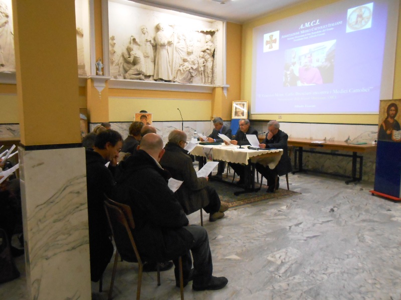 Quindi è importante, ha sottolineato Sua Eccellenza, che ci sia una continua integrazione dello sviluppo, un continuo discernimento della validità delle applicazioni delle nuove tecniche sulla persona umana e in questo è molto importante la visione che l’antropologia cristiana dà dell’uomo considerato nella sua interezza. E’ importante capire quali sono le conseguenze delle nostre azioni sull’altro. Quindi cattolici non solo perché si va a messa ma perché quello che viviamo durante la messa poi lo portiamo dentro la nostra professione. Il termine cattolico non richiama forme di chiusura ma richiama lo sforzo di dialogare con tutti, senza perdere la propria identità ma approfondendola senza temere di farlo, senza cercare contrapposizioni artificiose, perché tutto diventa ricchezza per il bene di tutti gli uomini, anche di quelli che non credono, di tutto l’uomo nella sua interezza fisica, psichica e spirituale, di ogni uomo dal concepimento fino alla fine della vita. L’associazione professionale cattolica aiuta a riflettere insieme su queste tematiche perché, nelle questioni della ricerca, non sempre tutto è immediatamente chiaro e la complessità della vita non ci permette semplificazioni drastiche che ci porterebbero a perdere qualcosa di valido. Siamo tutti chiamati ad essere cristiani cattolici, non individui, non persone sole e anche in questo l’associazione ci aiuta nel dialogo e nel sostenerci a vicenda per non scoraggiarci, per avere stimoli positivi, perché anche una presenza visibile e sostanziosa contribuisce a servire meglio l’uomo.