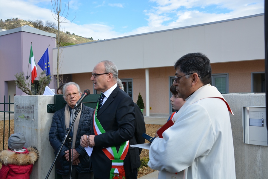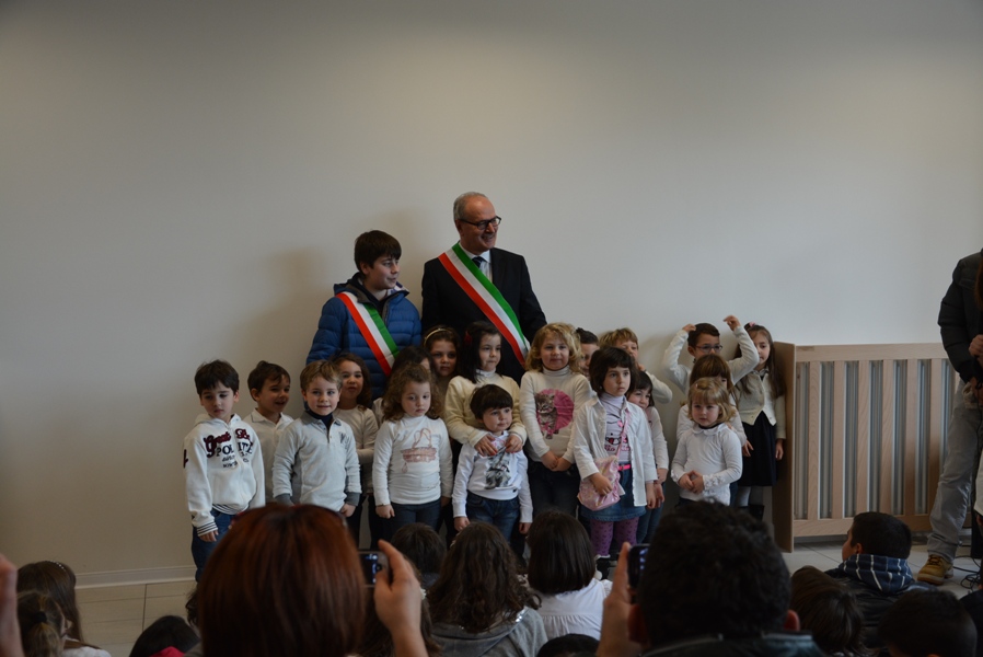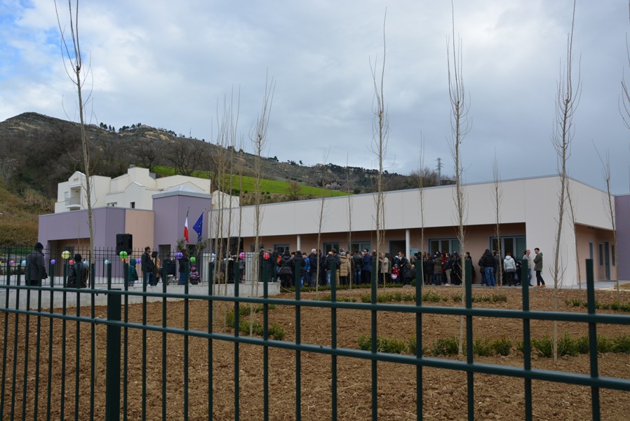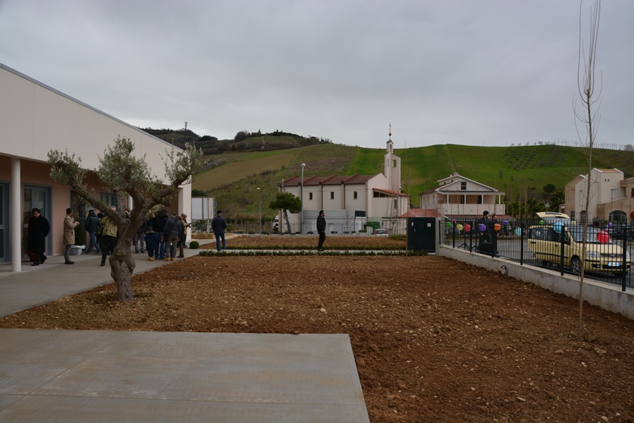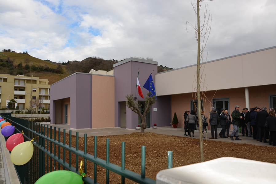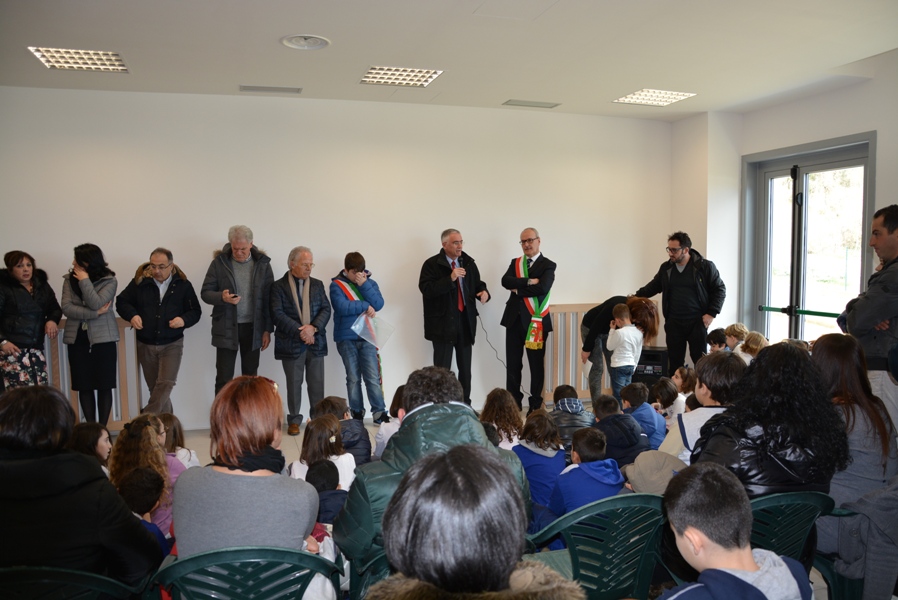 Siamo davvero contenti oggi di inaugurare questa opera con un grande spazio verde intorno, che è attrezzata anche per attività agricole anche da parte dei nostri bambini, che sarà arricchito di giochi, ma che presenta, tutt’oggi, un verde particolare, fatto di piante da frutto e da un orto botanico dove i nostri bambini potranno esercitarsi in attività proprie dei nostri padri e dei nostri nonni, quelle attività agricole che hanno fatto ricca la nostra Vallata e la nostra terra”.